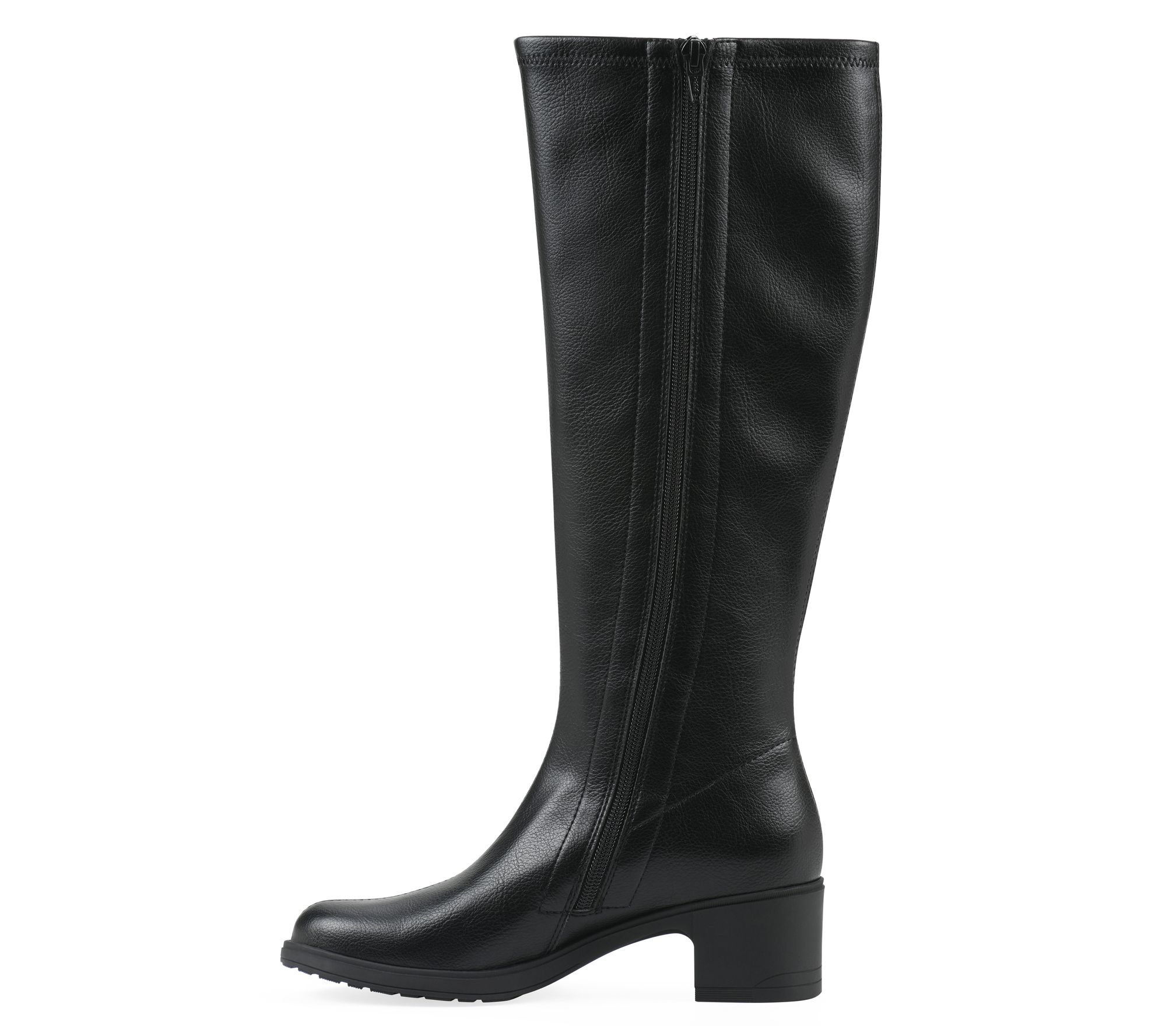 Out for brunch or heading to the office, these tall shaft boots keep your style on point and your stride confident. The wide calf design and rounded toe offer comfort for all-day wear, while a sturdy block heel and side zipper add a refined finish to any ensemble. From Cliffs by White Mountain.