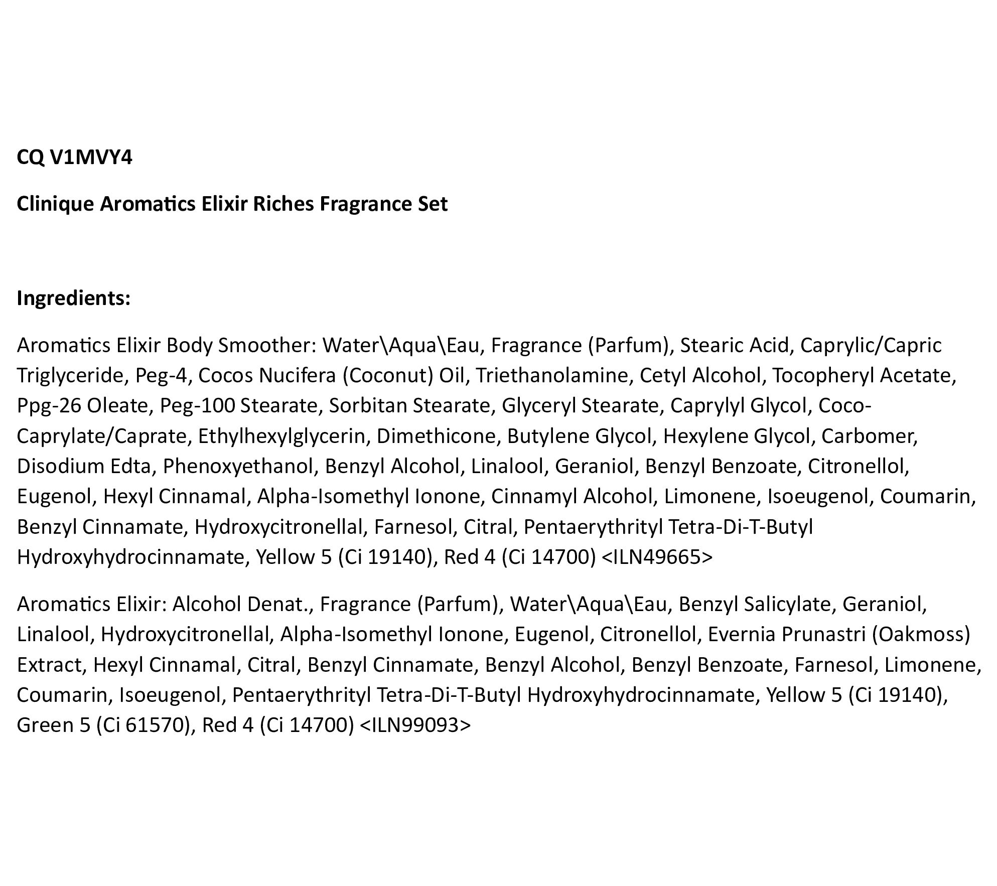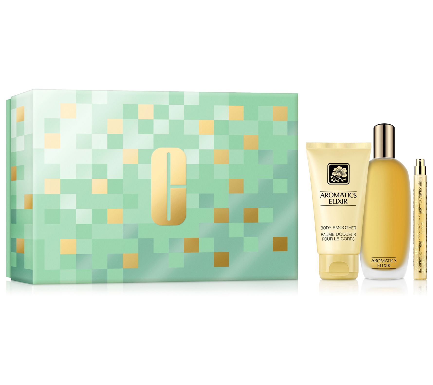 A bold fragrance trio for head-to-toe intrigue, Clinique Aromatics Elixir combines over 700 ingredients to create a confident, sensuous fragrance that goes far beyond the role of perfume. Rich vetiver, lush oakmoss, and luxurious patchouli are balanced with soft floral notes of ylang ylang and rose -- a bold blend that stirs the senses and spirit in subtle, pleasing ways. It's a uniquely intense and non-conformist fragrance that always makes a statement. This set includes the Aromatics Elixir Eau de Parfum Spray in two sizes (one for home and one for travel) and Body Smoother to soften and scent skin.