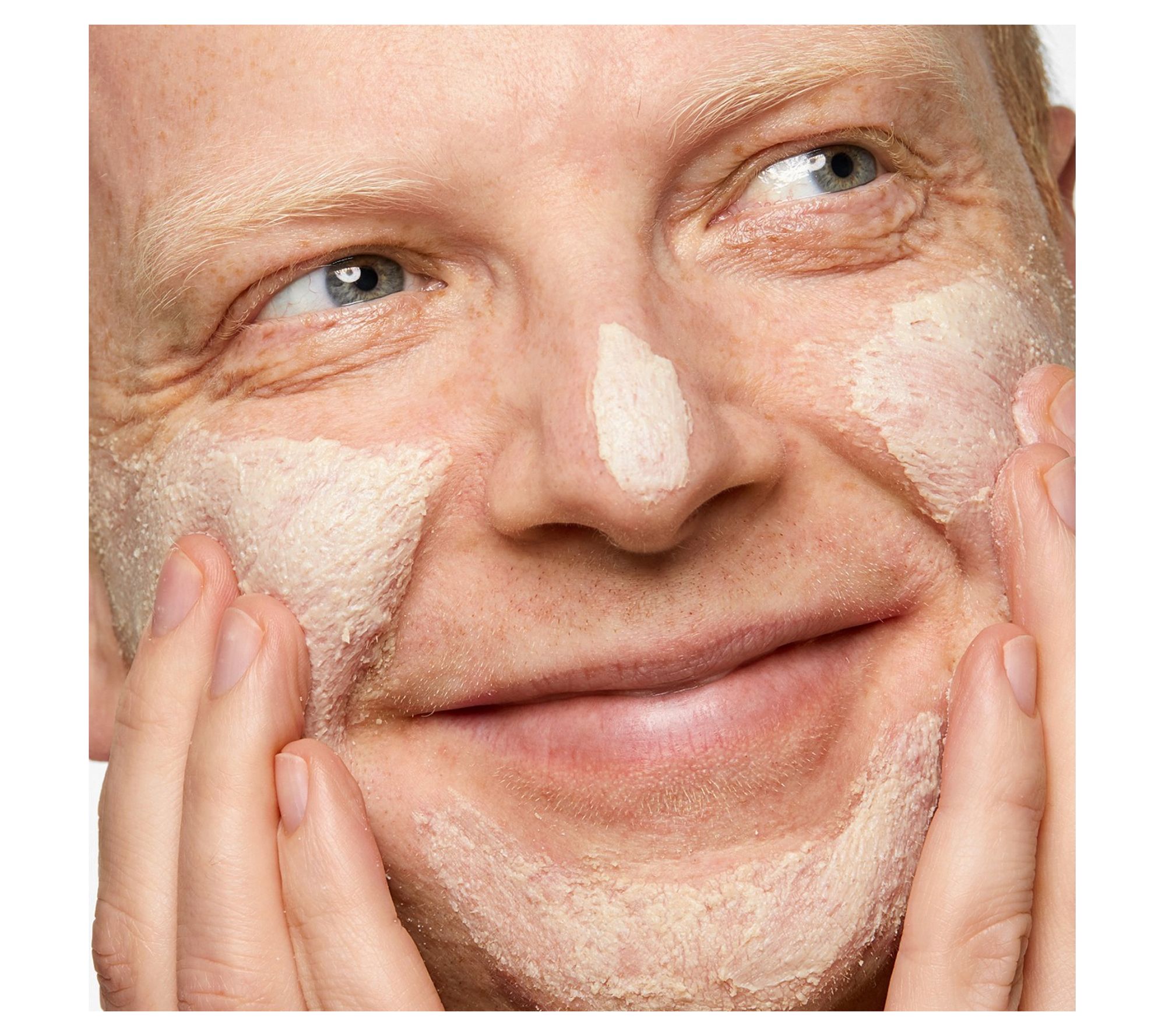 Clinique for Men Face Scrub: Apply scrub to wet face (including beard but avoiding immediate eye area). Massage, rinse. Build up to daily use or as needed. Precautions: Keep entirely clear of eye area. If product enters eye area, rinse with water.