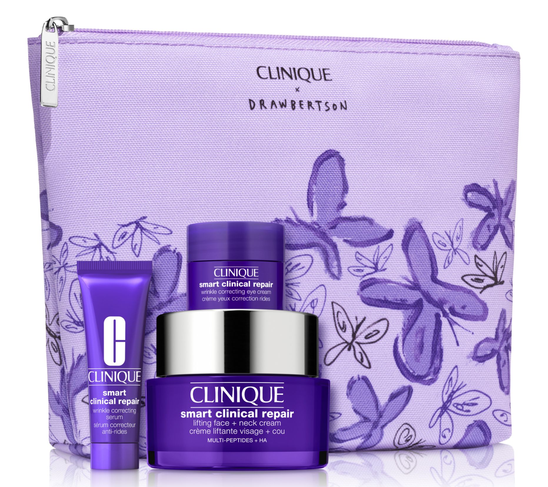 Discover Clinique's smart skincare essentials for lines, wrinkles, and more. This de-aging routine visibly lifts, smooths, and hydrates for younger-looking skin. Smart Clinical Repair Wrinkle Correcting Serum, Clinique's most advanced de-aging serum, visibly corrects lines and wrinkles, firms, and boosts radiance. Clinique Smart Clinical Repair Lifting Face + Neck Cream visibly lifts, firms, and reduces the look of wrinkles on face and neck. Clinique Smart Clinical Repair Wrinkle Correcting Eye Cream visibly reduces lines, depuffs, and brightens the eye area.