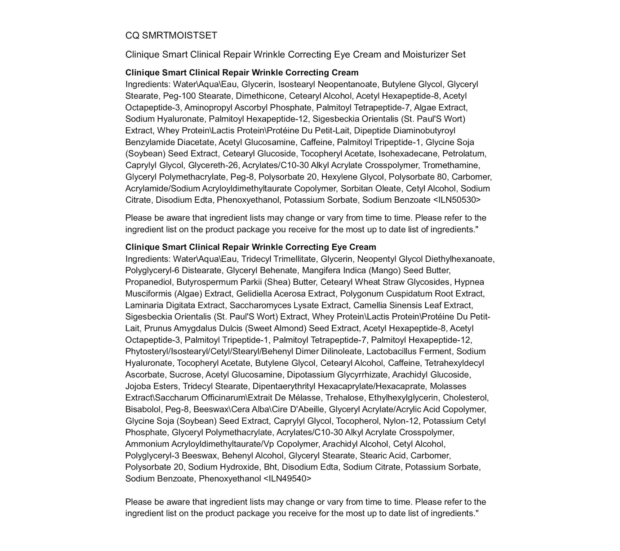 This Clinique skin-care set includes two best-in-class formulas to fight the look of lines and wrinkles. Clinique Smart Clinical Repair Wrinkle Correcting Cream helps temporarily reduce the look of lines and wrinkles as it hydrates. Smart Clinical Repair Wrinkle Correcting Eye Cream helps temporarily reduce the look of lines, depuffs, and brightens the appearance of the eye area.