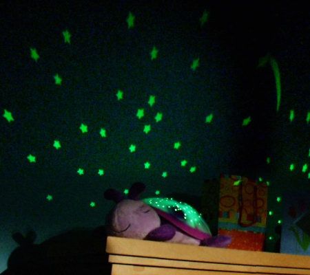 Starry, starry night. A twinkling night sky sets the stage for soothing slumber with this plush night-light. Its colored light display, projected onto the ceiling, may help ease your child into a serene sleep under the stars. From Cloud B.