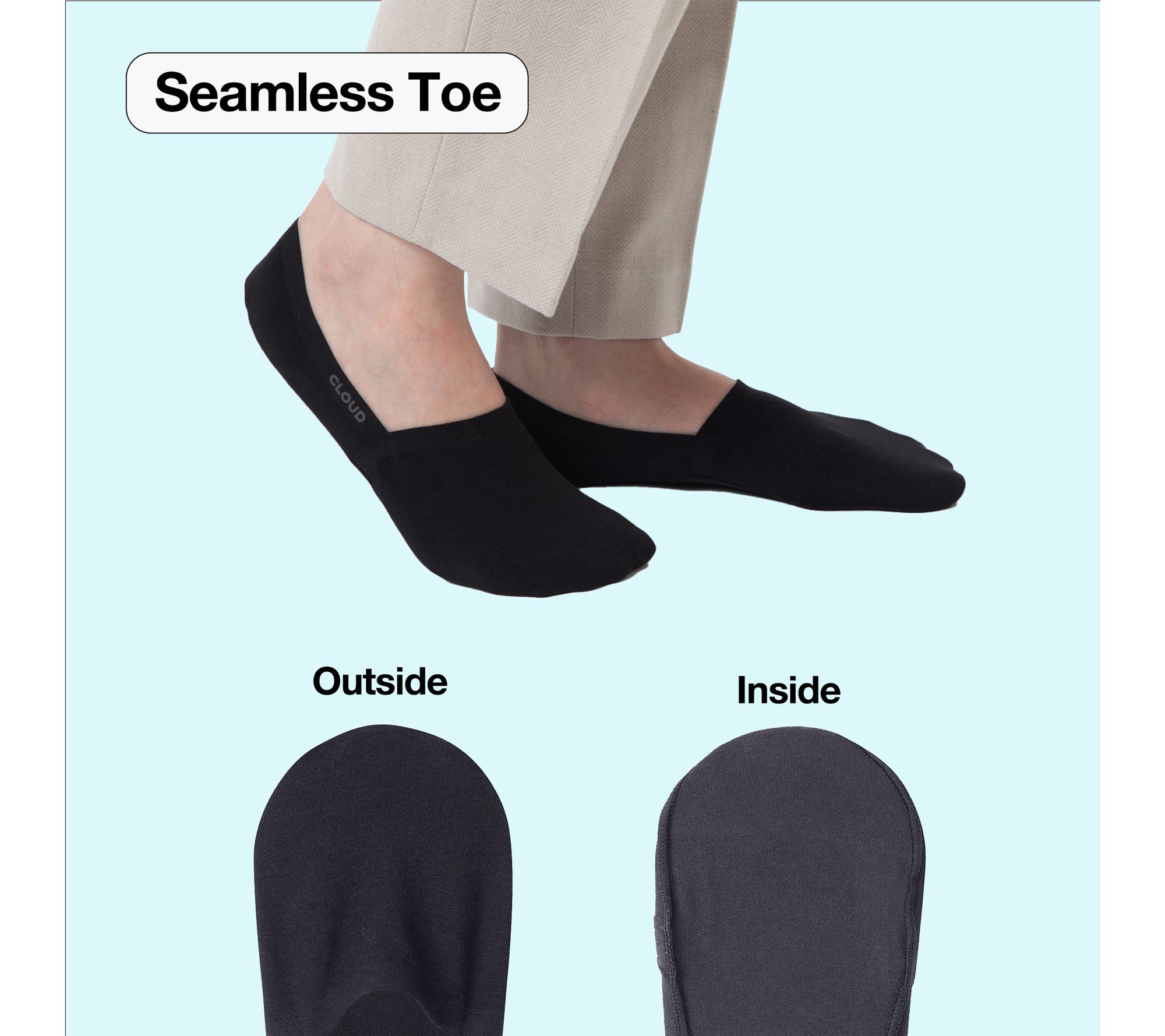 • Low-cut silhouette, seamless toe