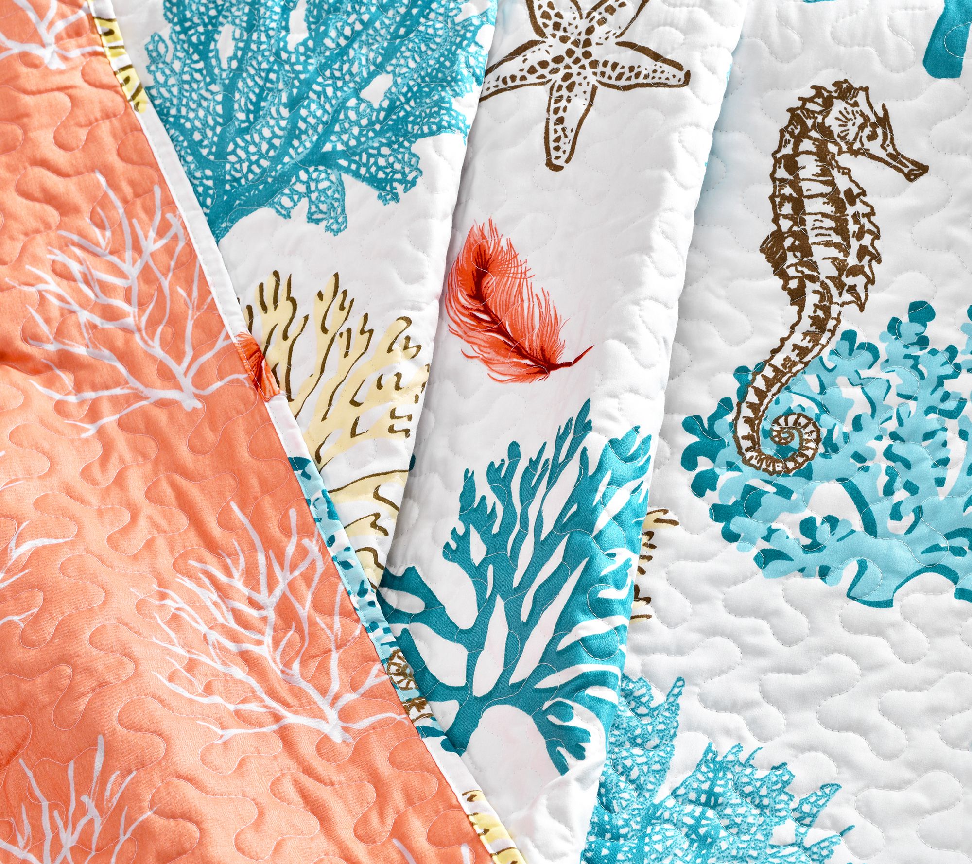Coral reefs and feathers combine to create a stunning reversible throw blanket perfect for your bedroom or living room. You'll live under this super-soft, extra-lush throw night after night. From Lush Decor.