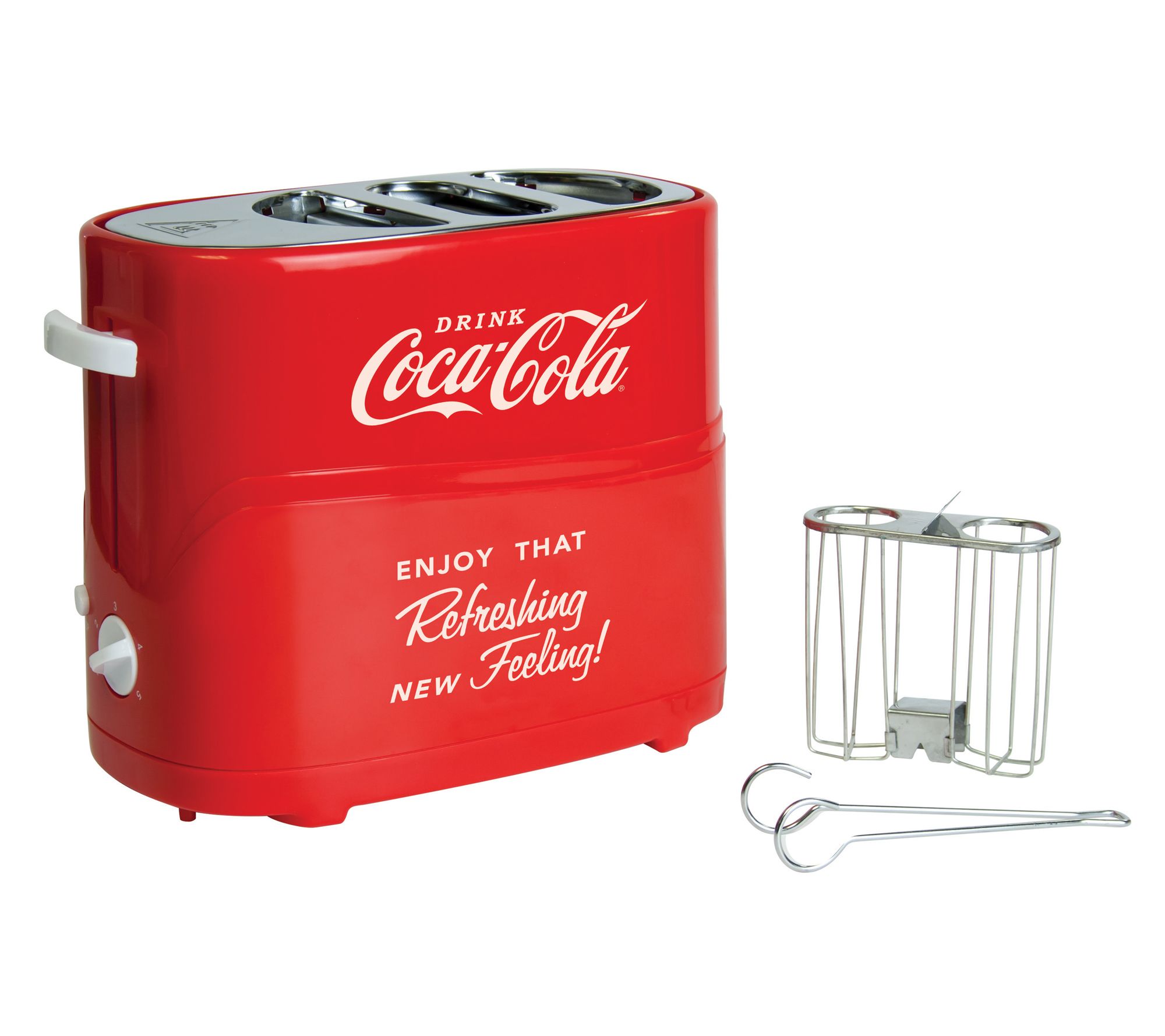 • Includes Coca-Cola pop-up hot dog toaster, hot dog cage, and mini tongs