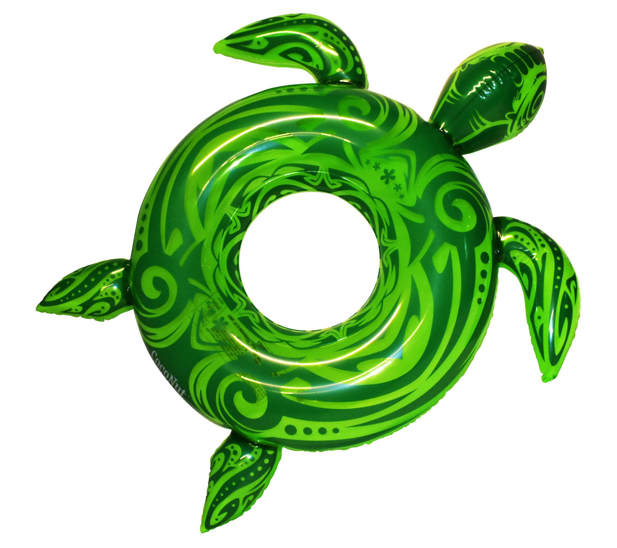 Glide around the pool with this tropical sea turtle pool float boasting brilliant colors and playful flippers. From CocoNut Outdoor.