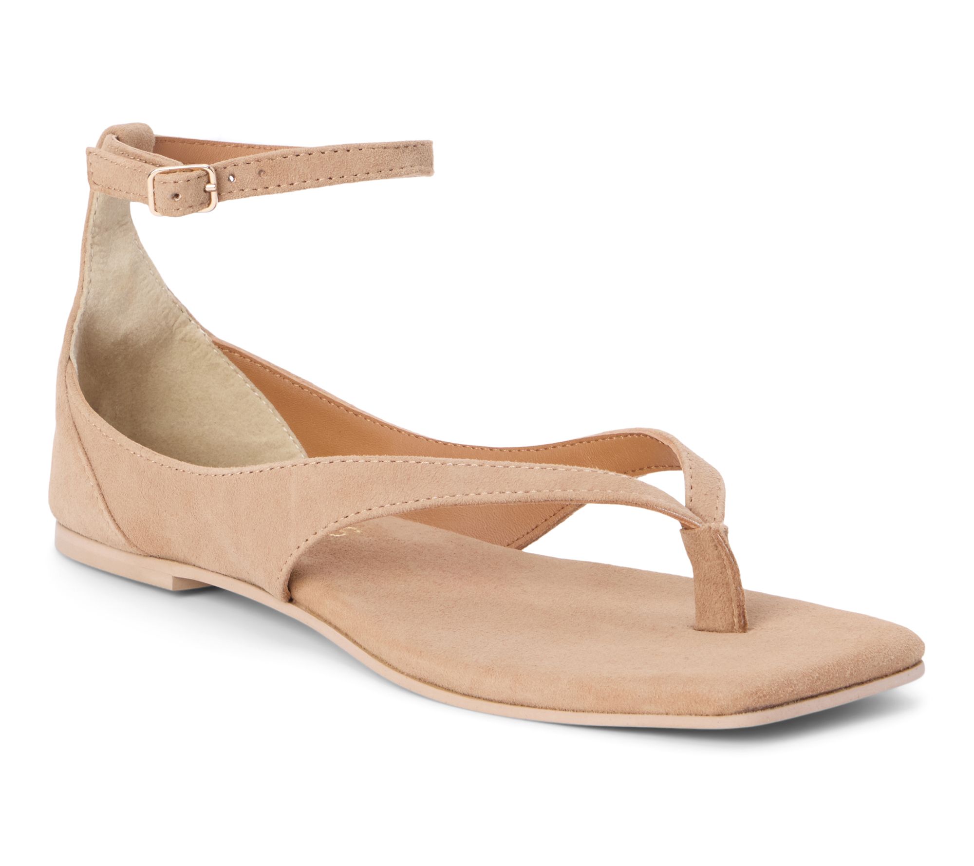 • Ankle strap with buckle closure, square toe