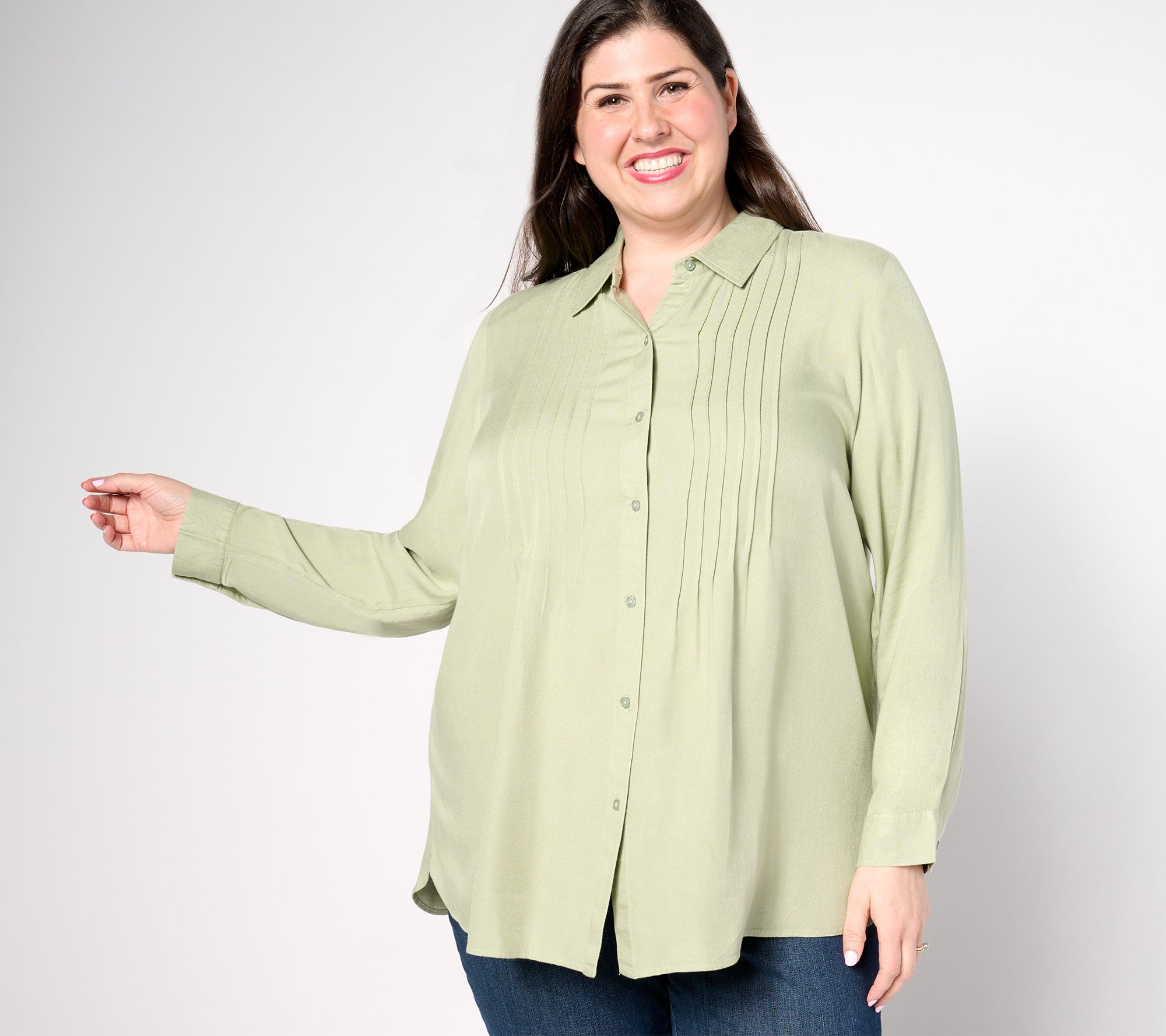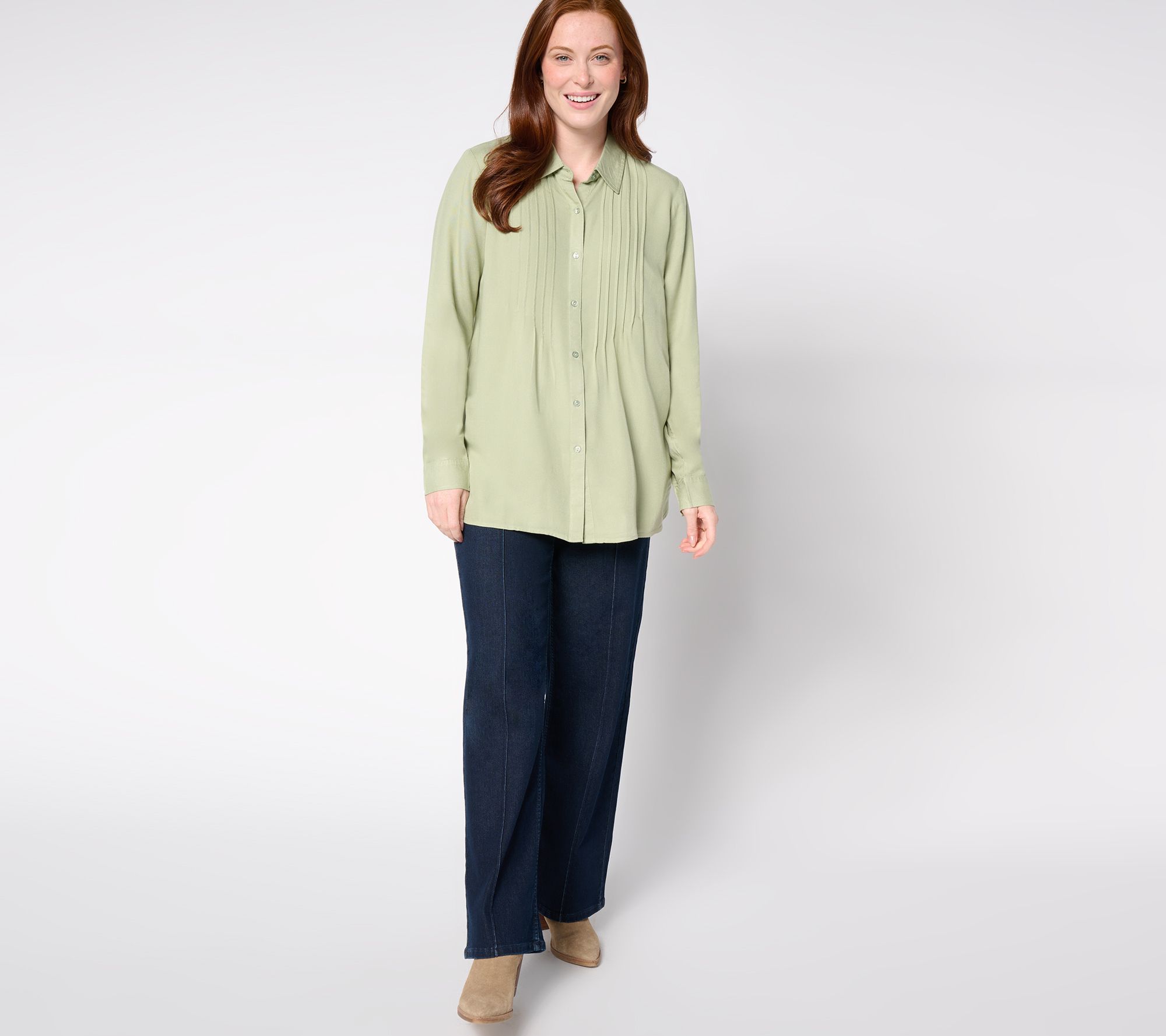 Beauty in the comfort. It's the pretty pintuck details that draw you in with this tailored shirt, but it's the soft-touch fabrication that keeps you reaching for it time and time again. Lovely for casual or professional settings. From Coldwater Creek.