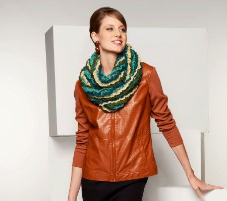 Embellish your ensemble with this eye-catching eternity scarf! Tonal stripes create a chic color story, while loosely knit yarn adds loft and volume to the circular scarf. From Collection XIIX.