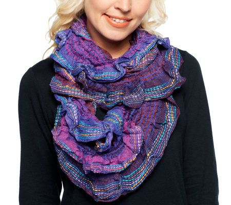 • Multicolored, textured, scrunch eternity design; lightweight blend