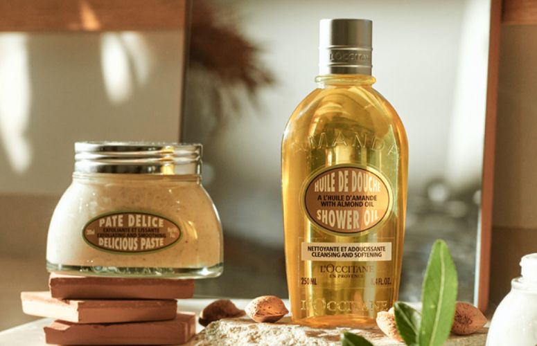 L'Occitane Radiant Almond Ritual Shower Scrub & Supple Skin Oil 2pc