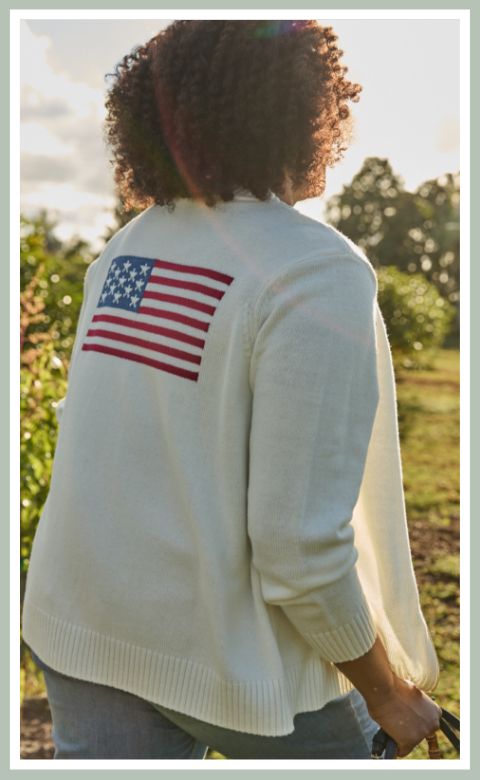 Denim & Co. Active Americana Flag French Terry Sweatshirt