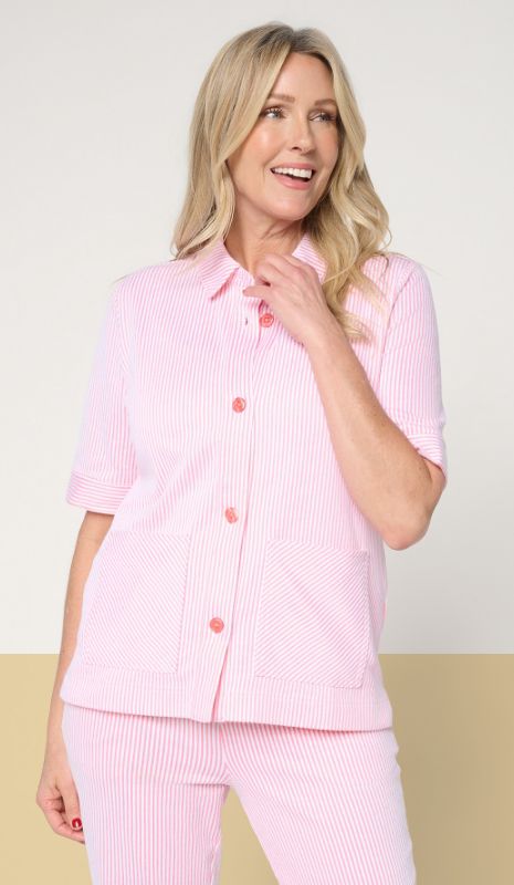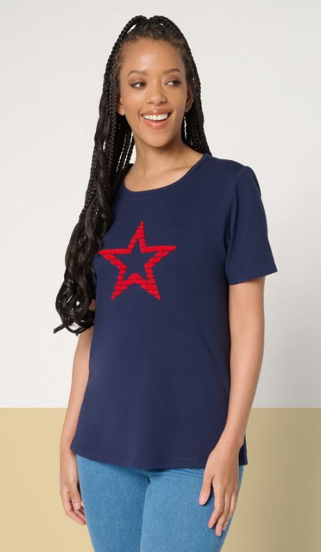 Belle by Kim Gravel French Terry Stars Short Sleeved Striped Top