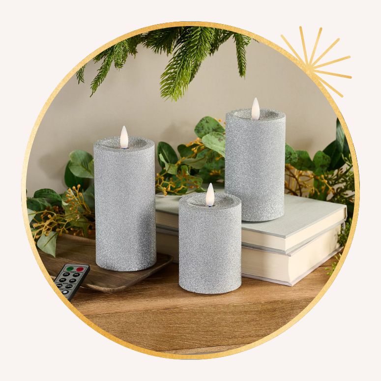 LumaBase Wooden Snowflake Candle Tray with 3 Glass Holders