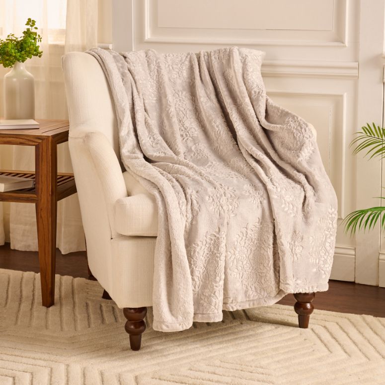 Home Reflections 60x70 Layla Sculpted Floral Plush Throw
