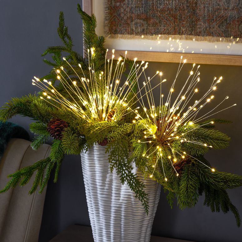 Illuminated Mercury Glass 9.5" Taper w/ Greenery by Valerie