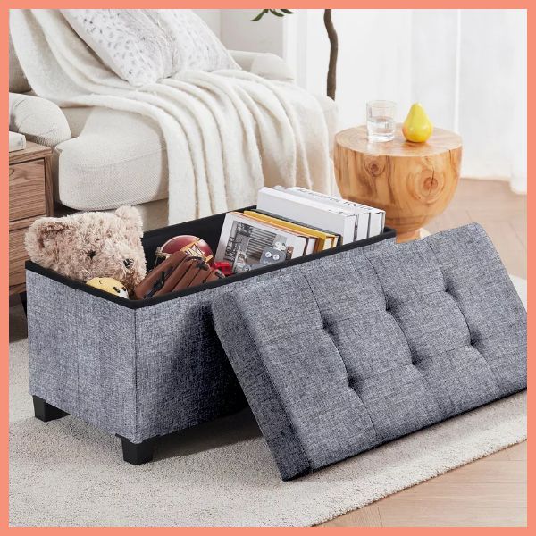 Ornavo Home Foldable Tufted Linen Large Storage Ottoman Bench