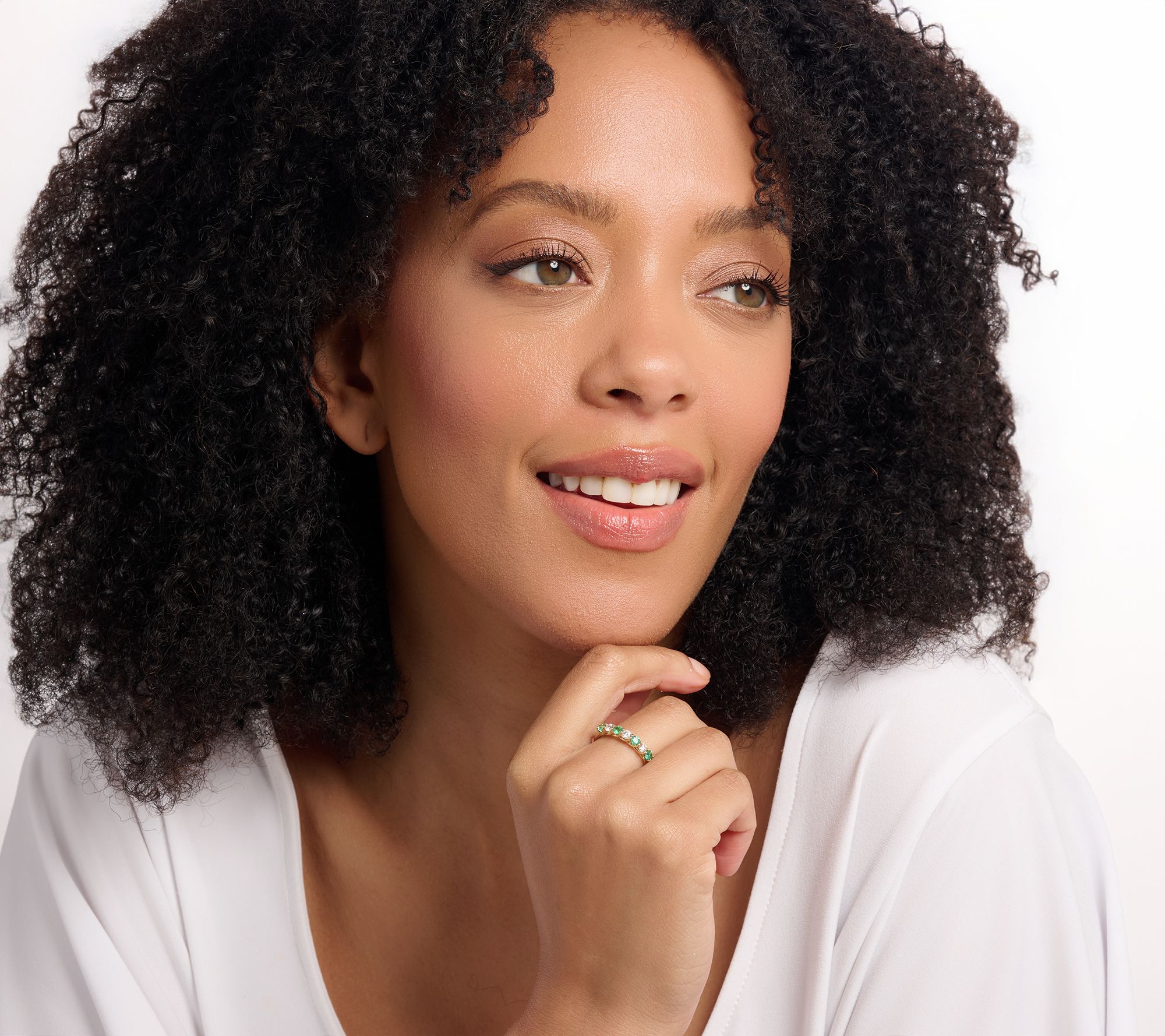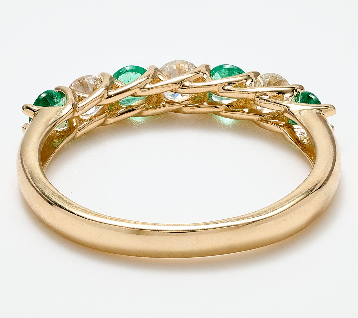 Brilliant accents of round emeralds and diamonds come together in this 14K gold band ring, capturing a sophisticated burst of color and radiance for any occasion. Whether celebrating a special milestone or elevating your favorite everyday look, this refined design brings an elegant touch that shines day or night. From Colors by Jeff Moseley.