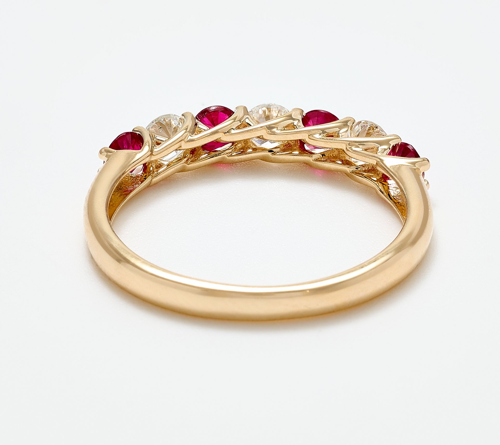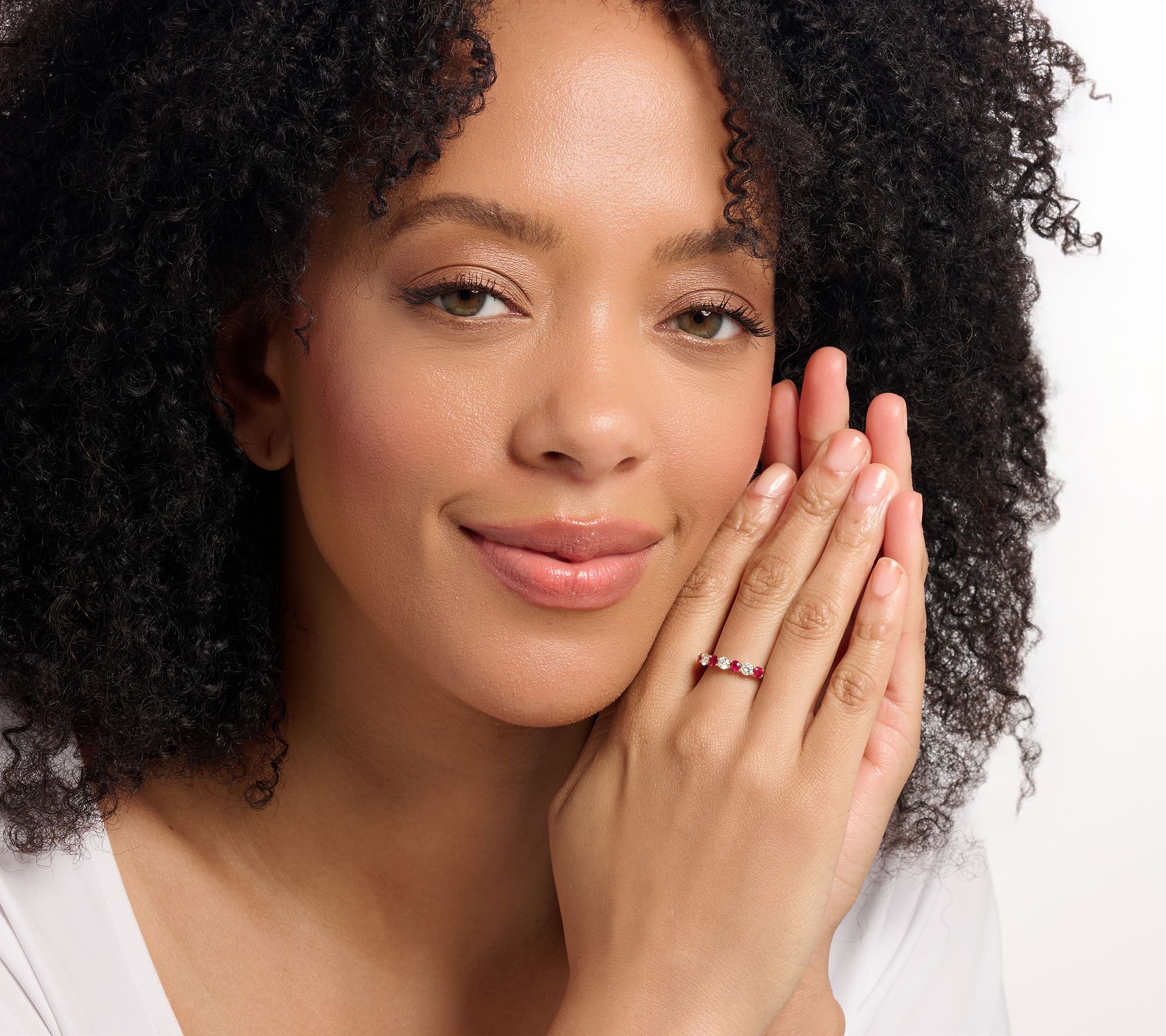 Vivid rubies and glimmering diamonds come together in this 14K gold band ring, ready to add a layer of color and light to your day. The timeless combination of prong-set heat-treated rubies and untreated diamonds makes it well suited for celebrating milestones or simply bringing elegant flair to any outfit. From Colors by Jeff Moseley.
