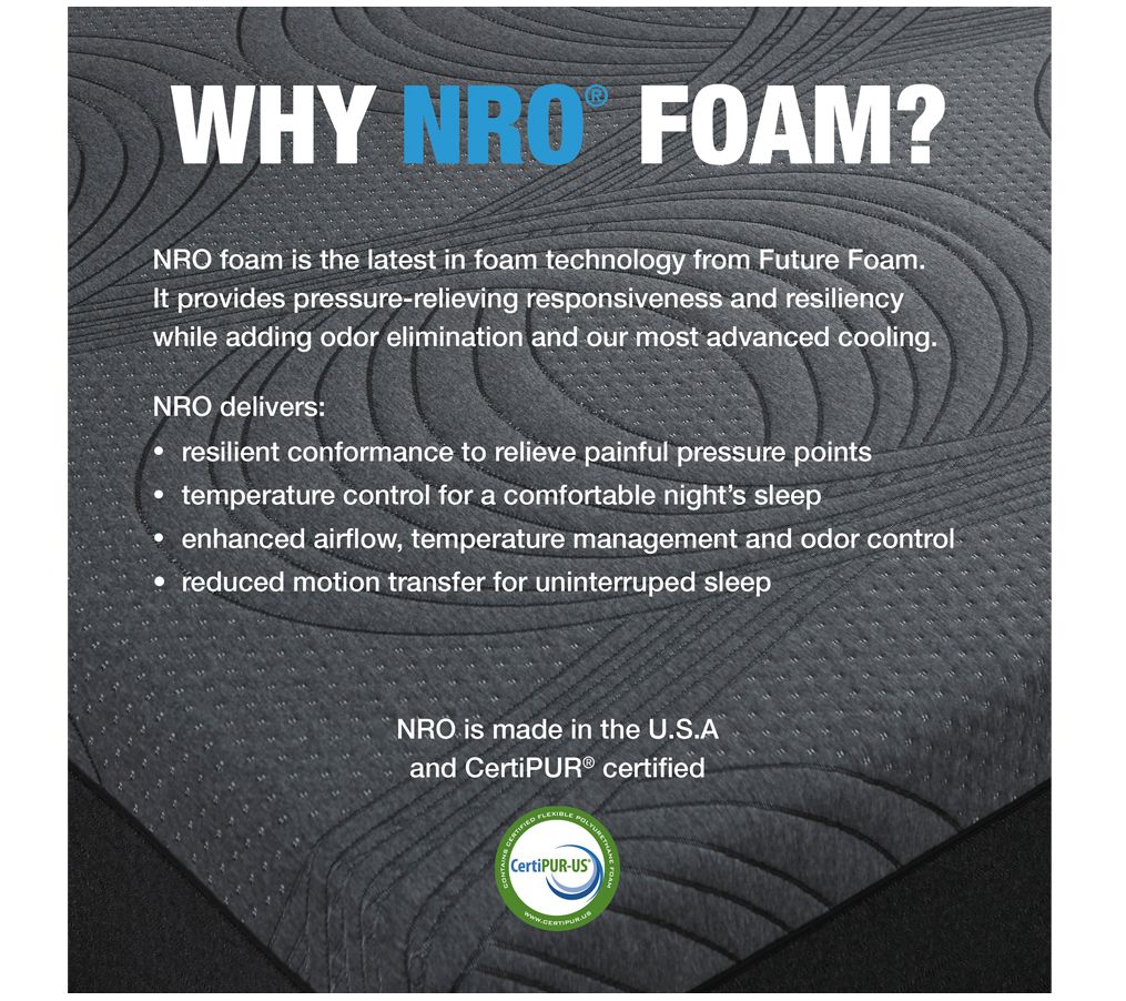 Designed with activated-carbon memory foam, the NRO foam mattress delivers an impeccable blend of comfort, support, breathability, and freshness. Sweet dreams! From ComforPedic from BeautyRest.