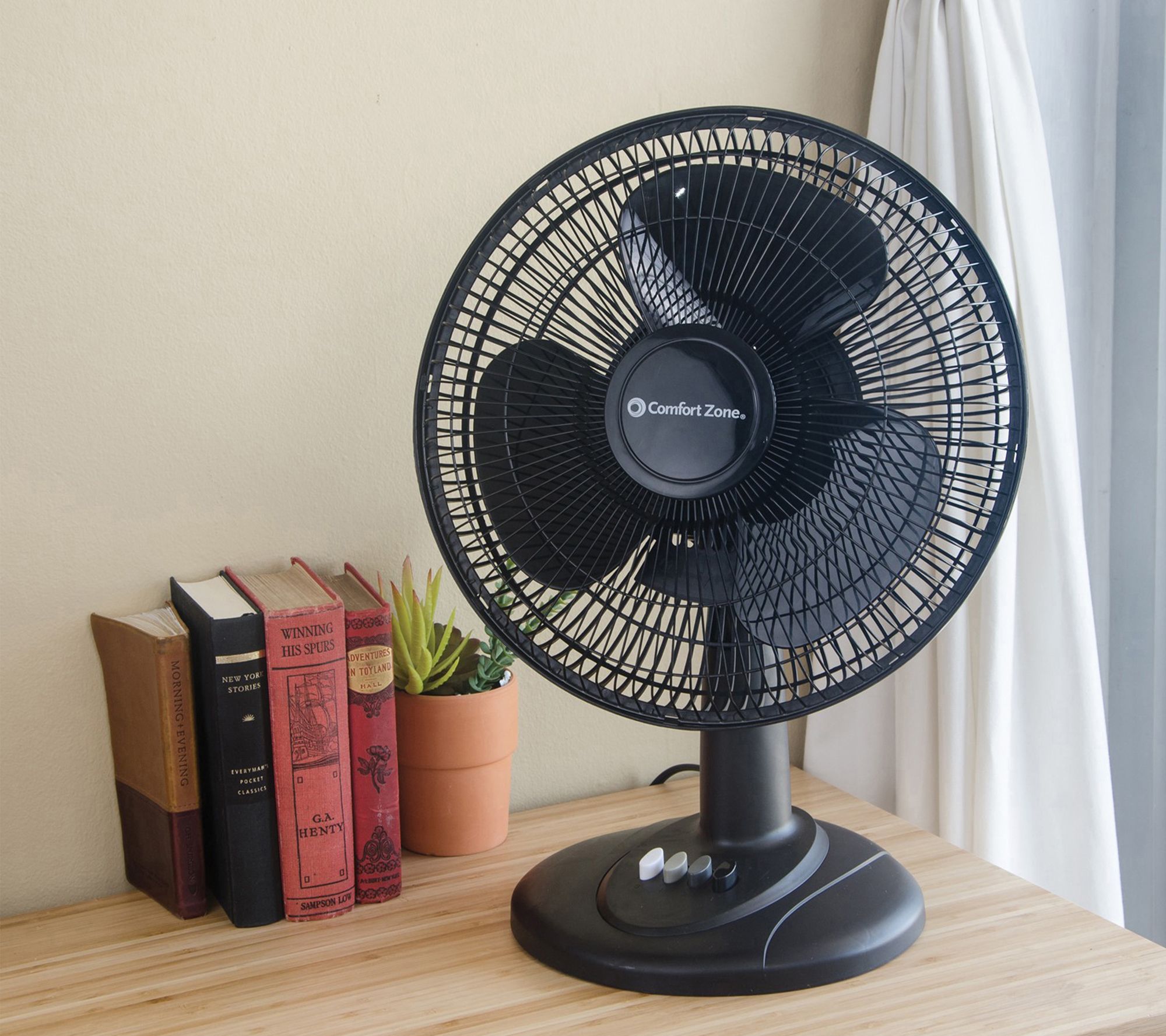 Keep things cool and fresh -- in any room -- with this oscillating table fan. From Comfort Zone.