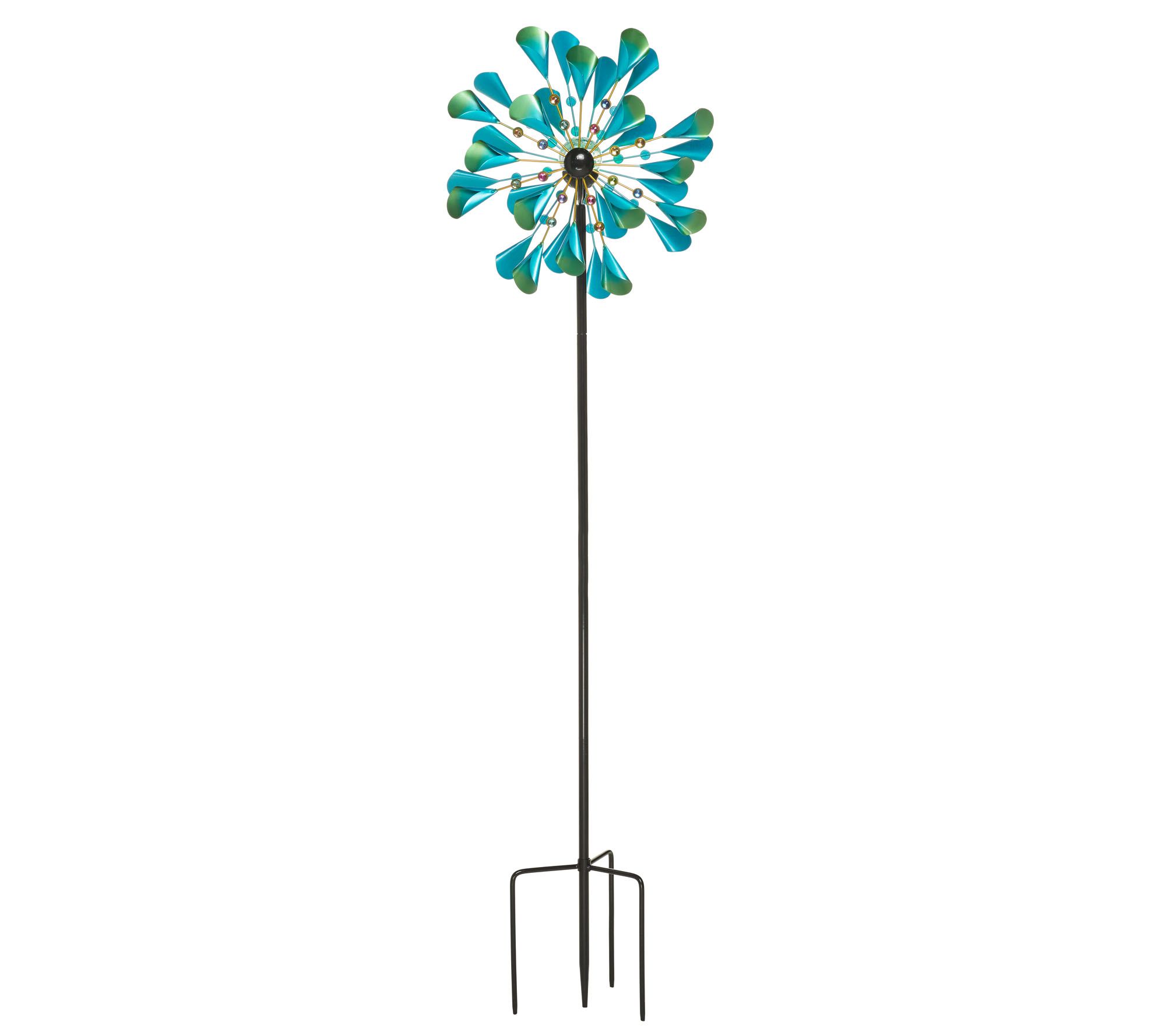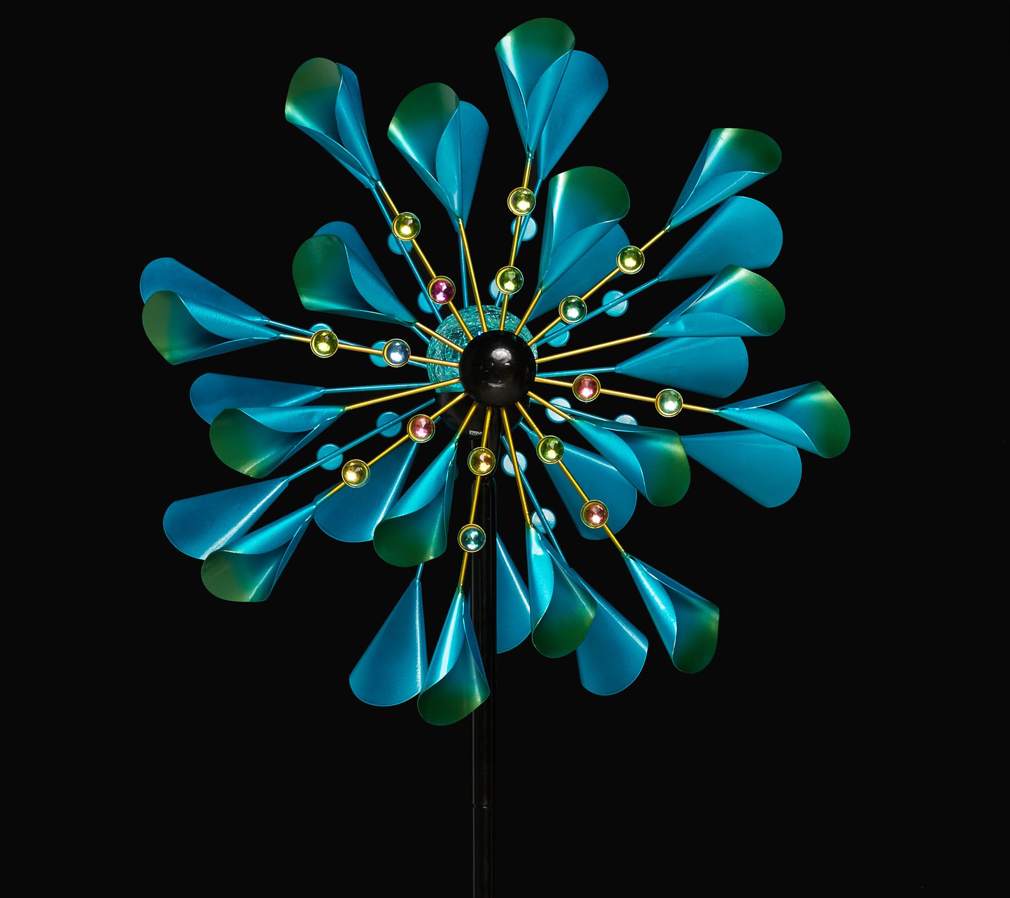 This dazzling spinner makes windy days a delight with a shiny metallic finish, jeweled springs, and a color-changing light! From Compass Home.