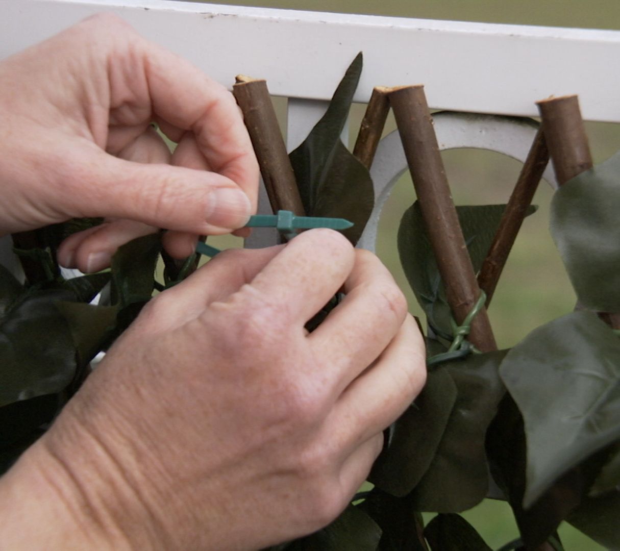 • Includes privacy fence, 70 white LED light faux-ivy leaves, and 12 zip ties