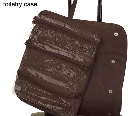 Includes weekend bag, detachable toiletry roll, and removable cosmetic case