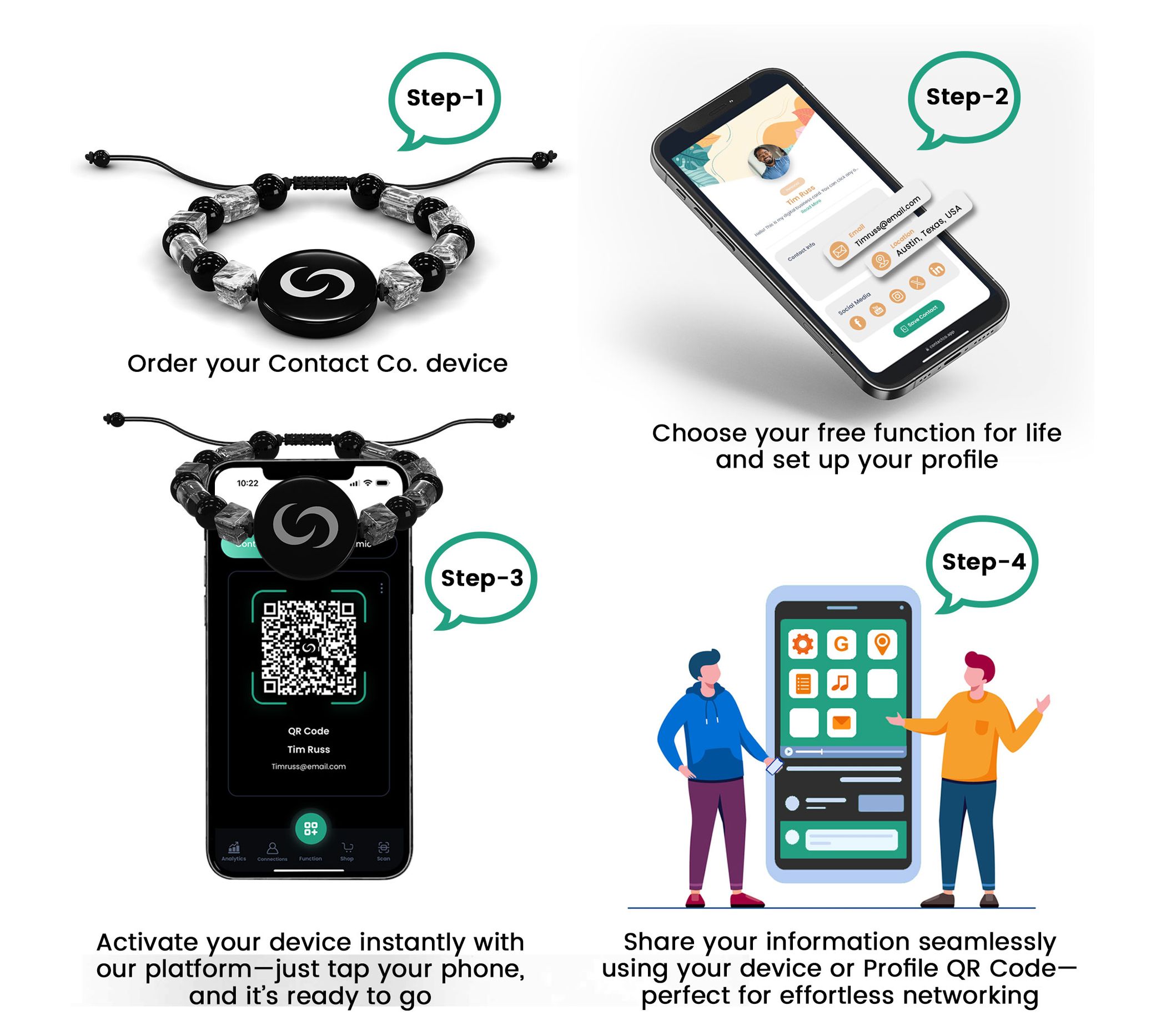 Elevate your networking game with the Contact Co. smart wearable pendant. This elegant accessory, available in sleek black or white, allows you to share your digital business card, social profiles, or payment codes with a simple tap. Effortlessly update your shared information through the Contact Co. app, ensuring your contacts always receive up-to-date details. From Contact Co.
