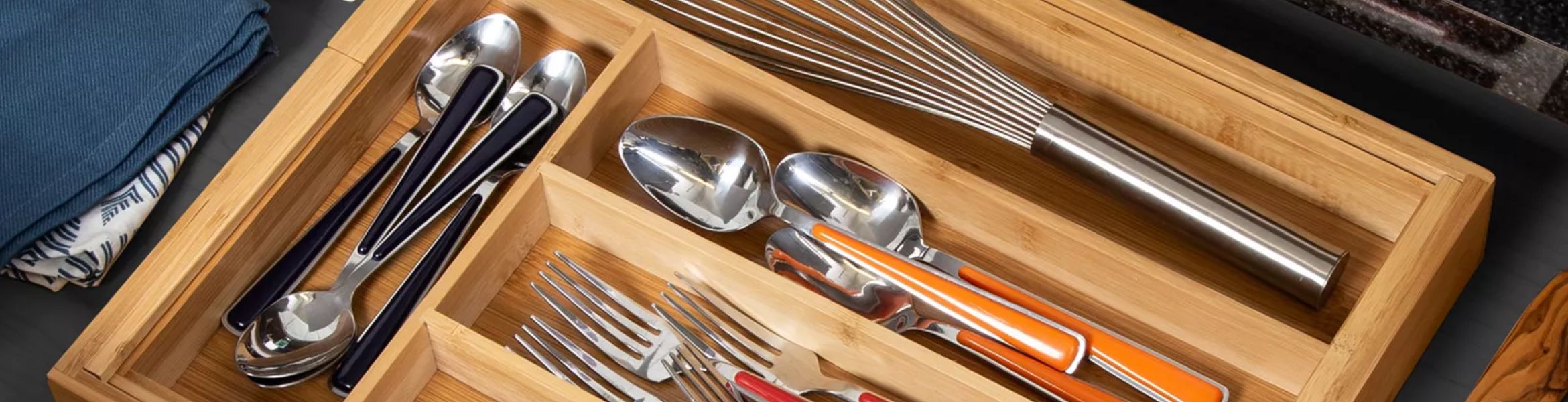 Efficiently organize your kitchen drawers with smart storage products designed to maximize space and make it easy to grab the tools you need. From utensil dividers to adjustable drawer organizers, these solutions keep your tools and silverware neatly arranged and easily accessible. Explore our selection of kitchen drawer organizers to bring order to your kitchen drawers.