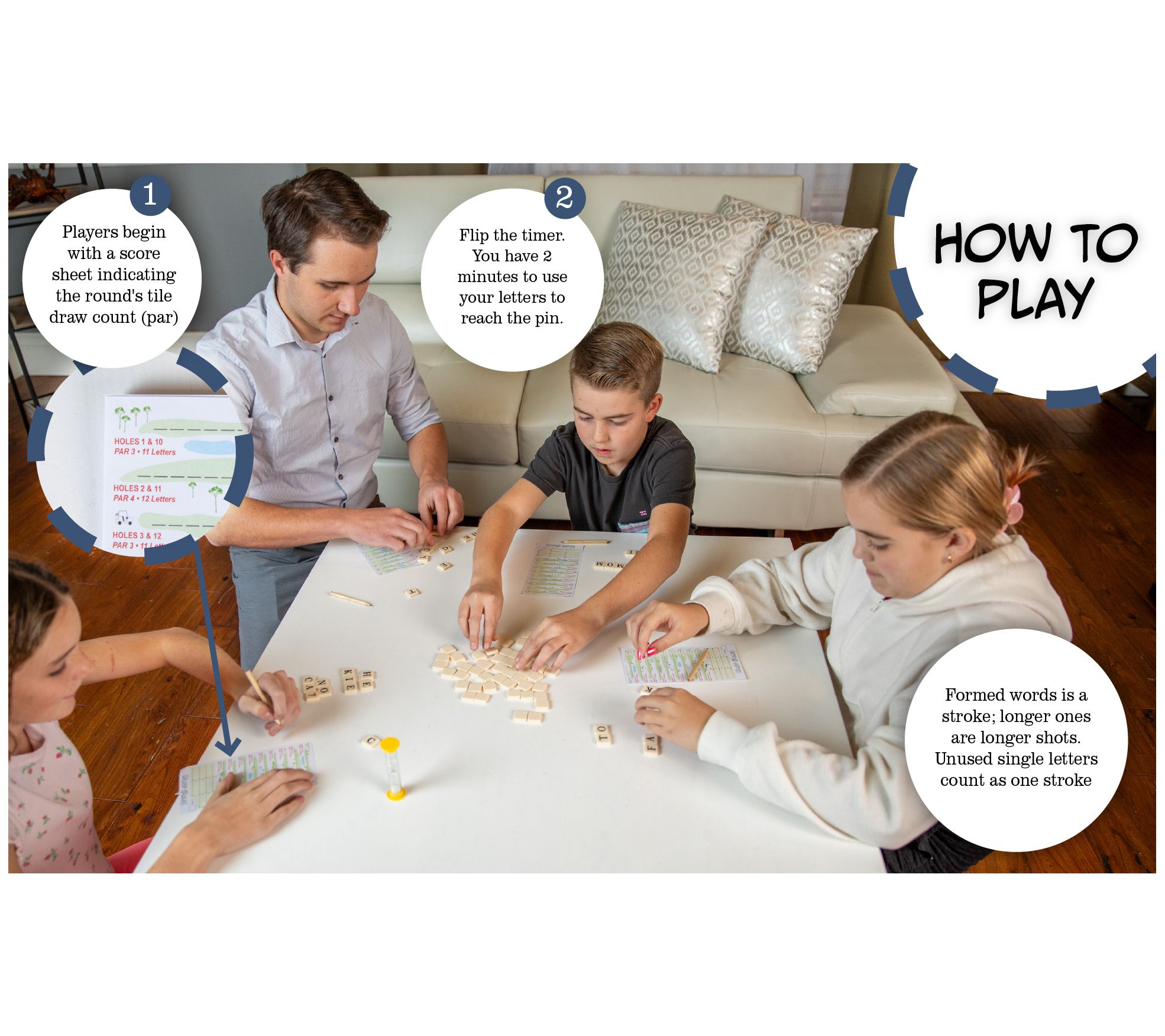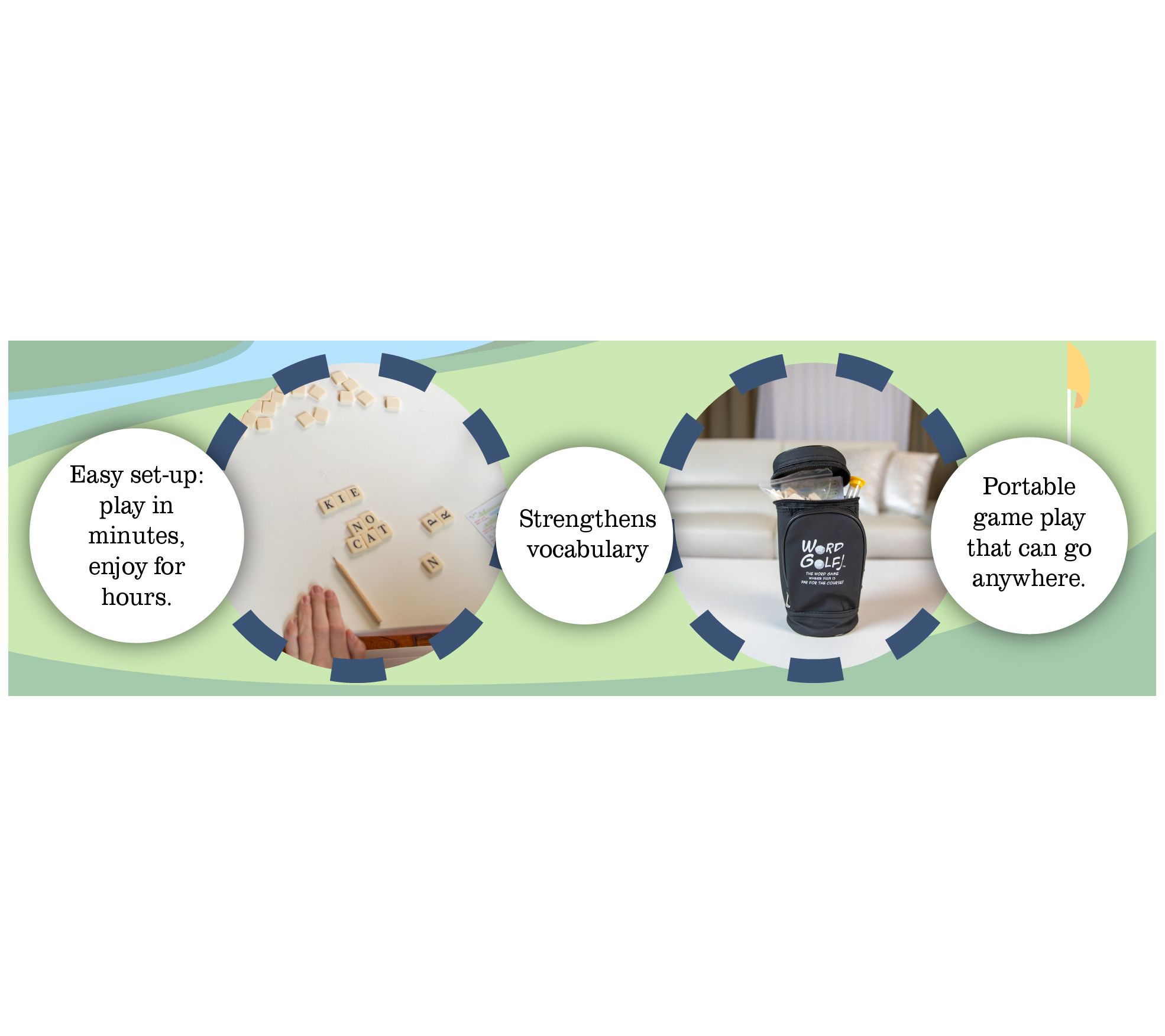 Enjoy family game night with Continuum Games word golf, a portable game that combines the thrill of golf with spelling challenges. Race against the timer to create words and reach the pin in the fewest strokes possible. From Continuum Games.