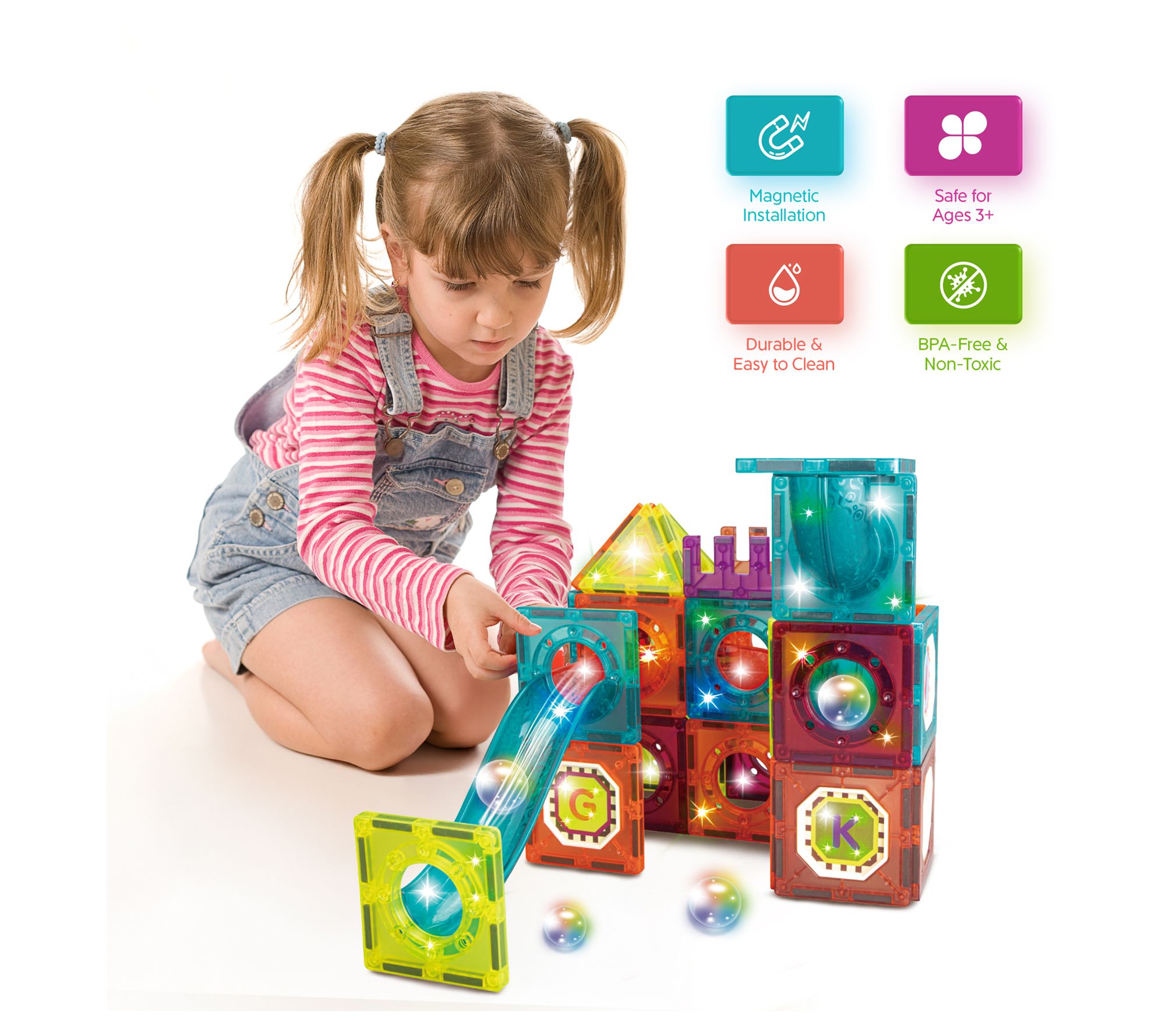Brighten up playtime as kids arrange magnetic tiles into imaginative marble runs that light up the room once the lights go down. The Glow-in-the-Dark Marble Run Magnetic Tile Set transforms STEM concepts into hands-on excitement, letting creativity and critical thinking shine in every unique creation -- ideal for solo adventures or group fun. From Contixo.