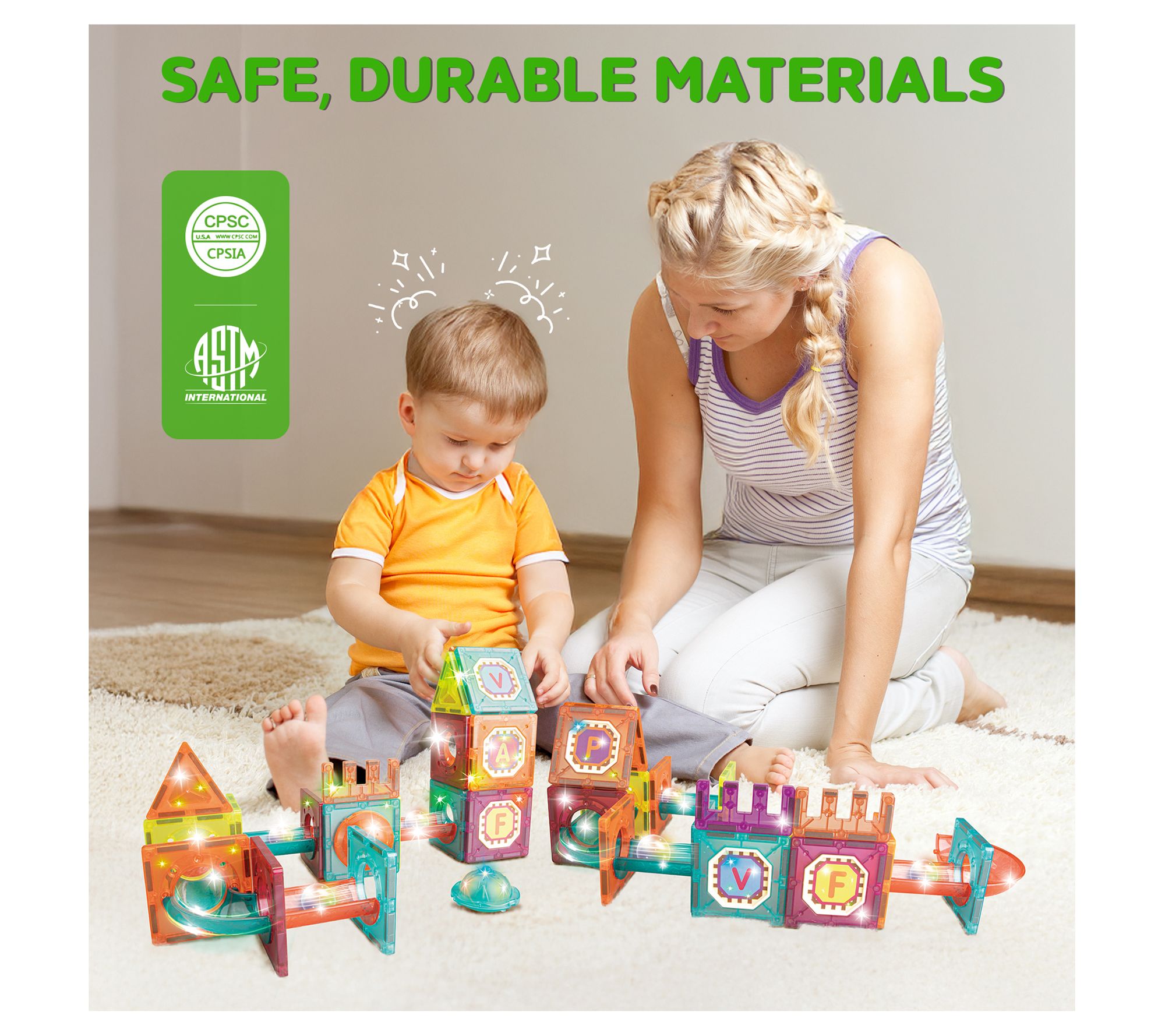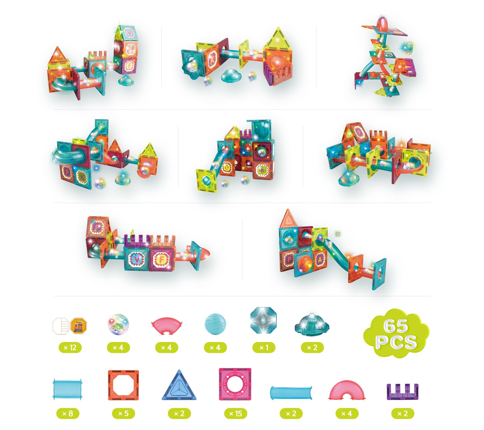 Contixo 65-Piece Glow-in-the-Dark Marble Run Magnetic Tile Set