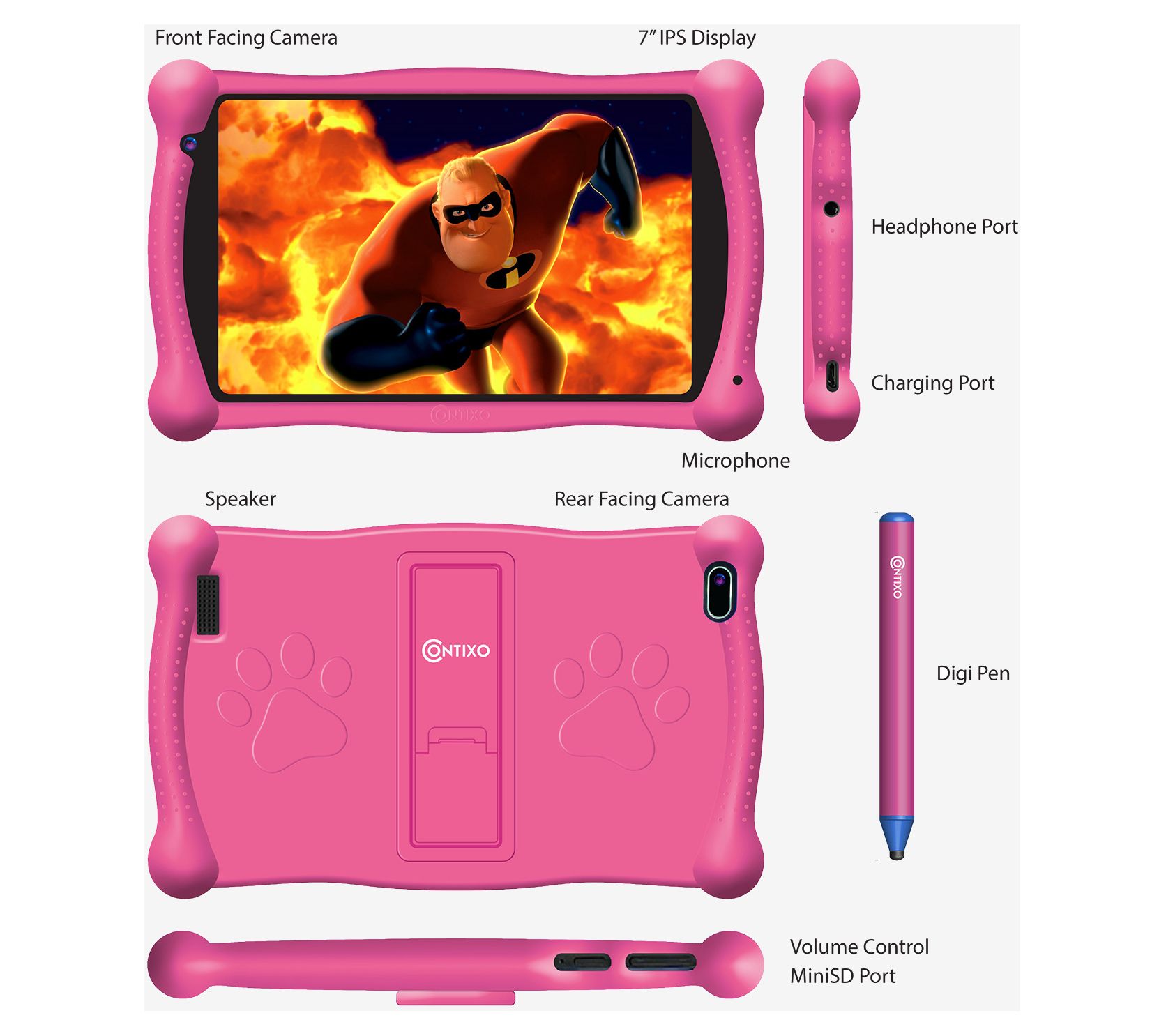 Let your littles enjoy the educational and entertainment features a tablet offers with this kid-friendly design and colorful case -- complete with parental controls for your peace of mind. Plus, with a carry case and cushioned headphones, they can listen to their content on-the-go while you enjoy the quiet. From Contixo.