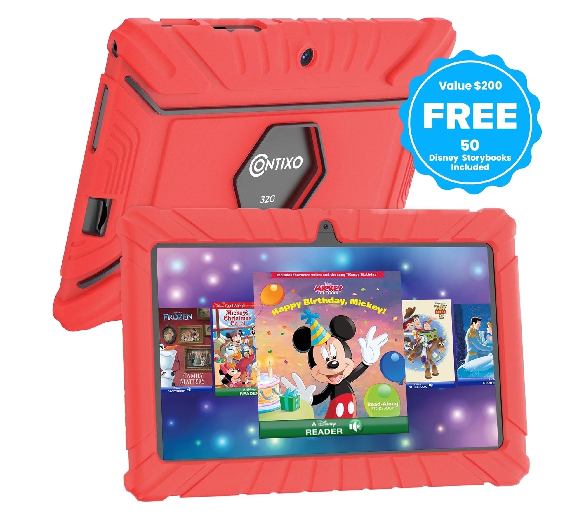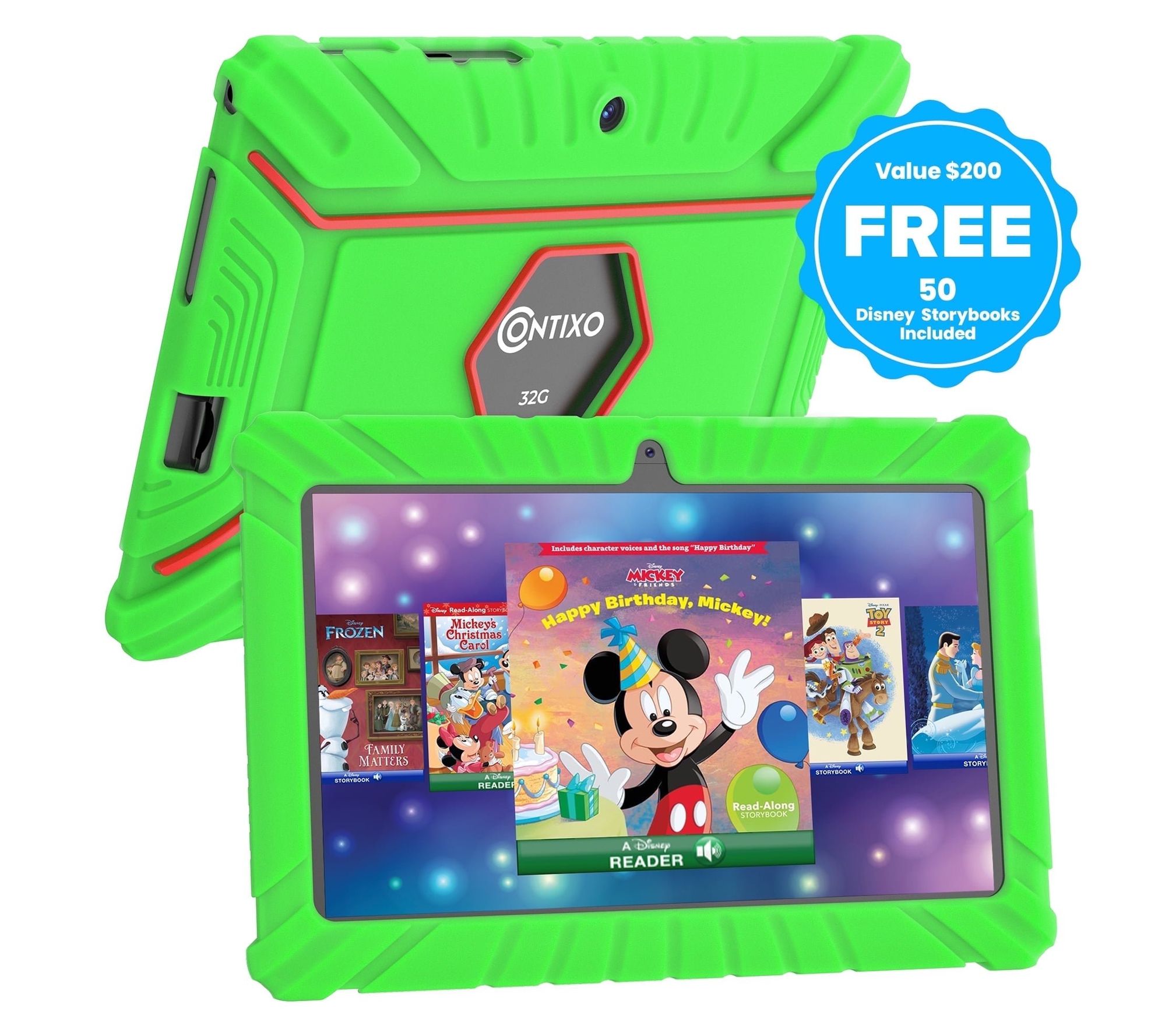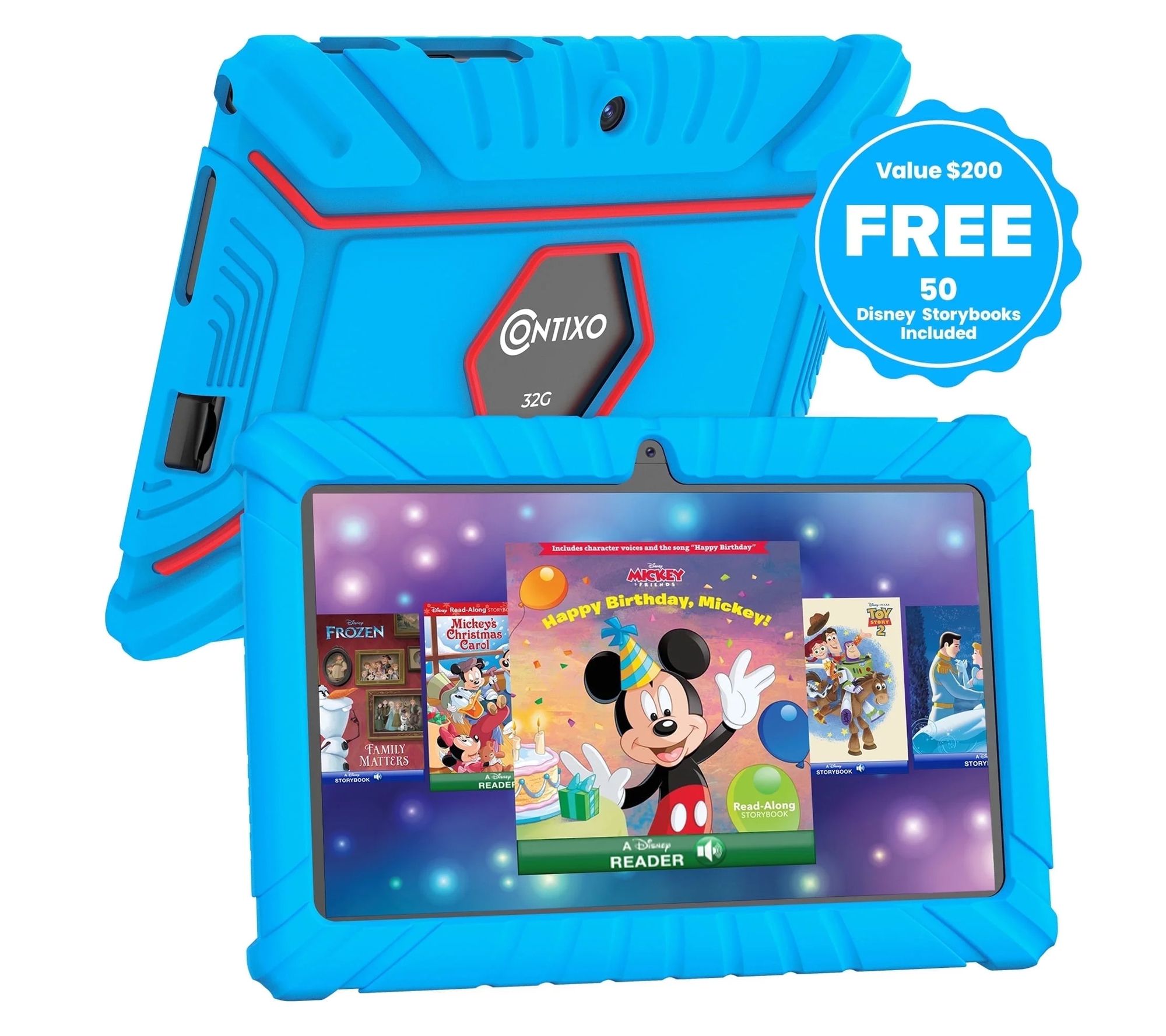 Whether it's storytime before bed or a quiet afternoon activity, this V8 7" kids tablet makes learning and play exciting with over 50 Disney digital audio eBooks and a colorful, protective case. Streamlined for little hands and growing minds, it combines vibrant graphics, a kid-friendly interface, and helpful parental controls to encourage creativity and safe exploration. From Contixo.