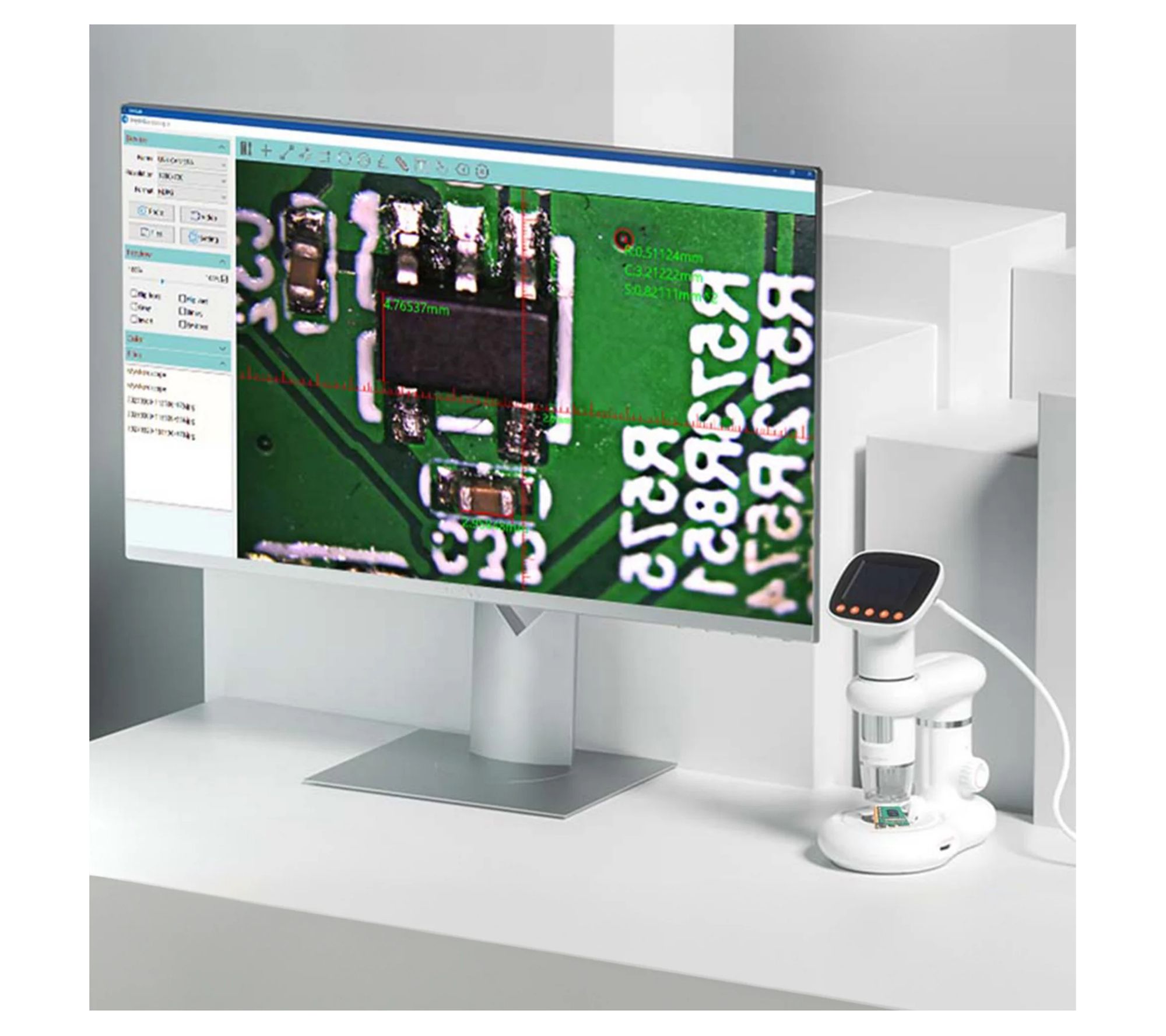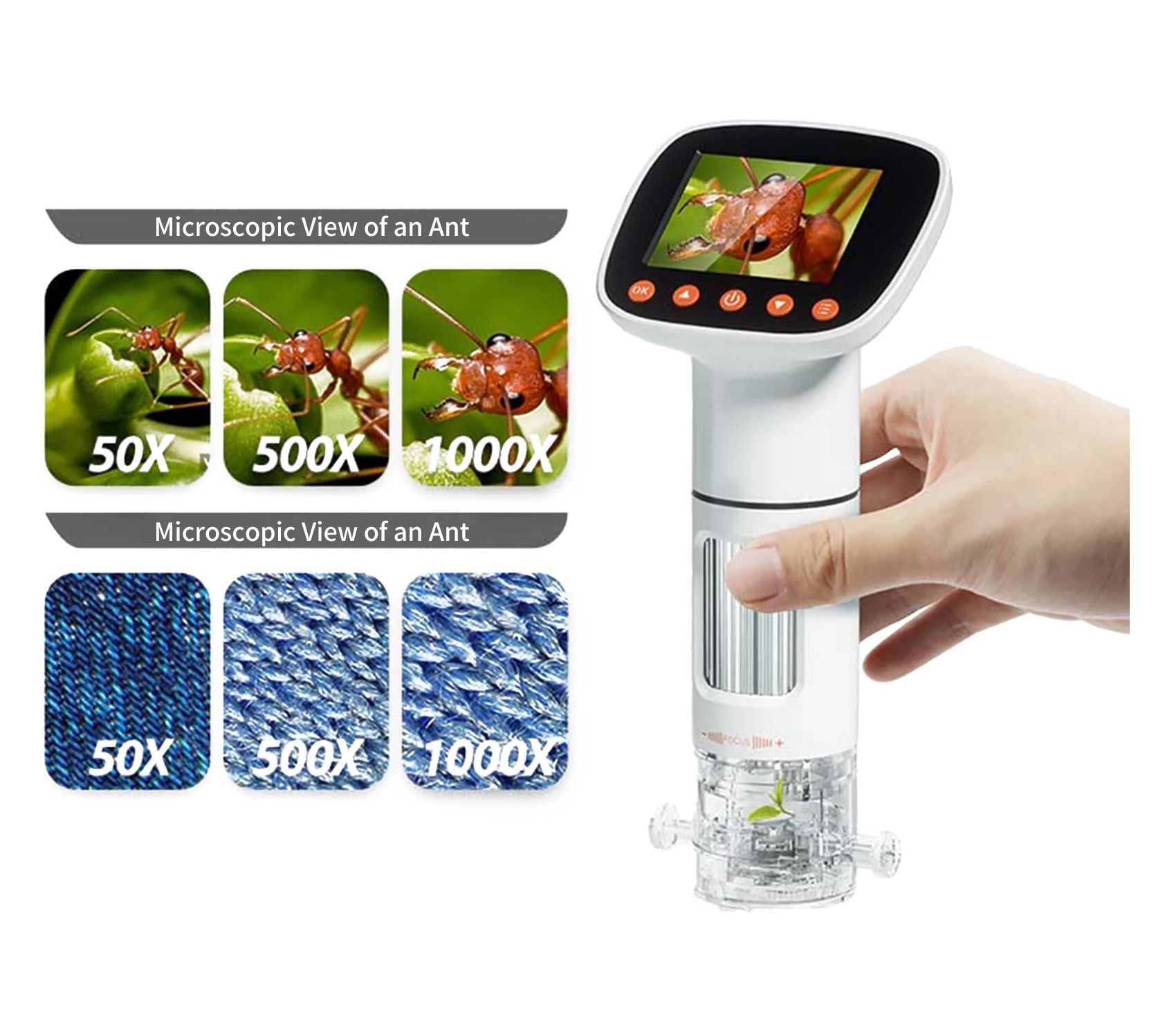 • Includes handheld microscope with built-in rechargeable battery, microscope base with two AAA batteries, USB to Type C charging cable, and user manual