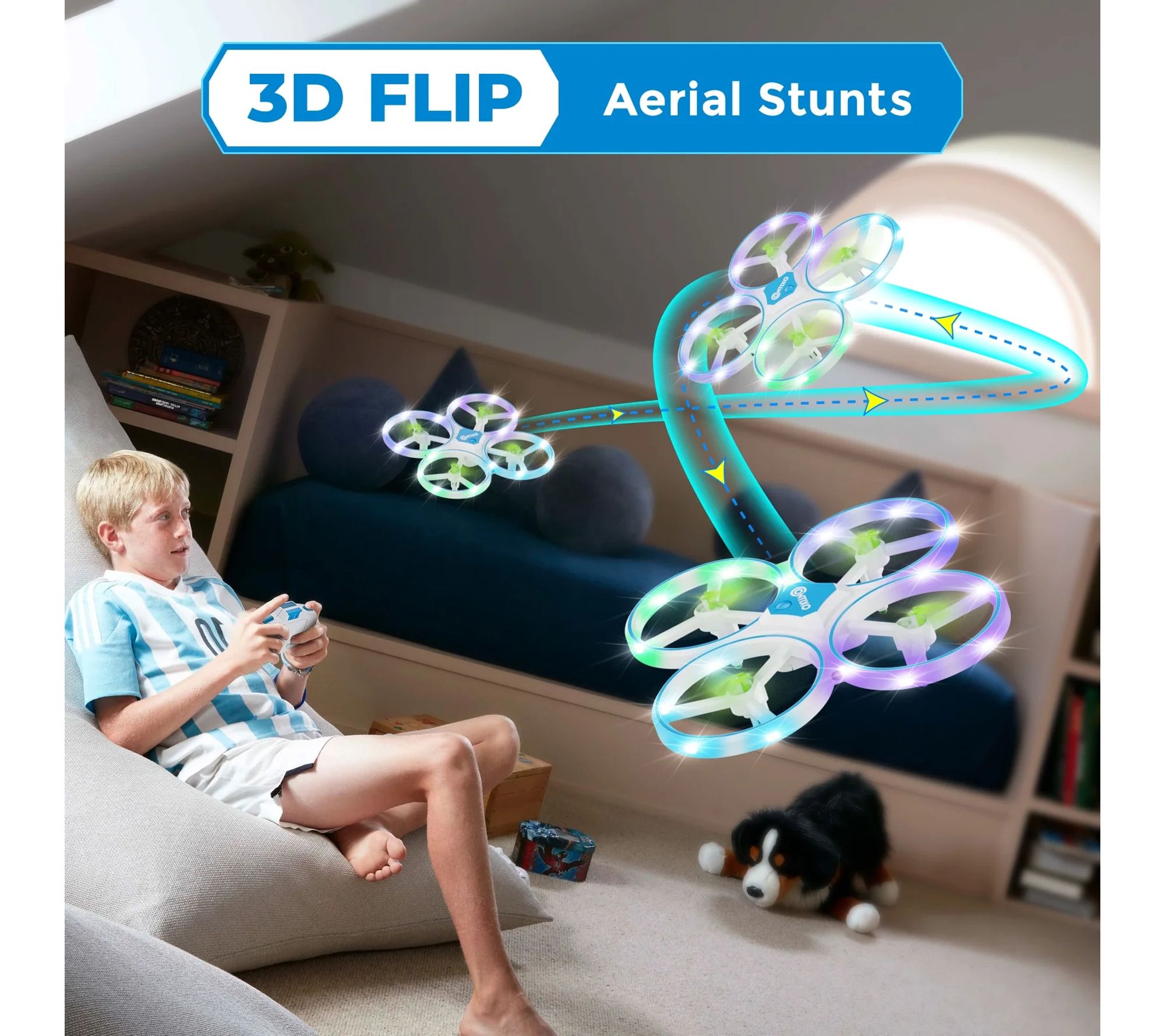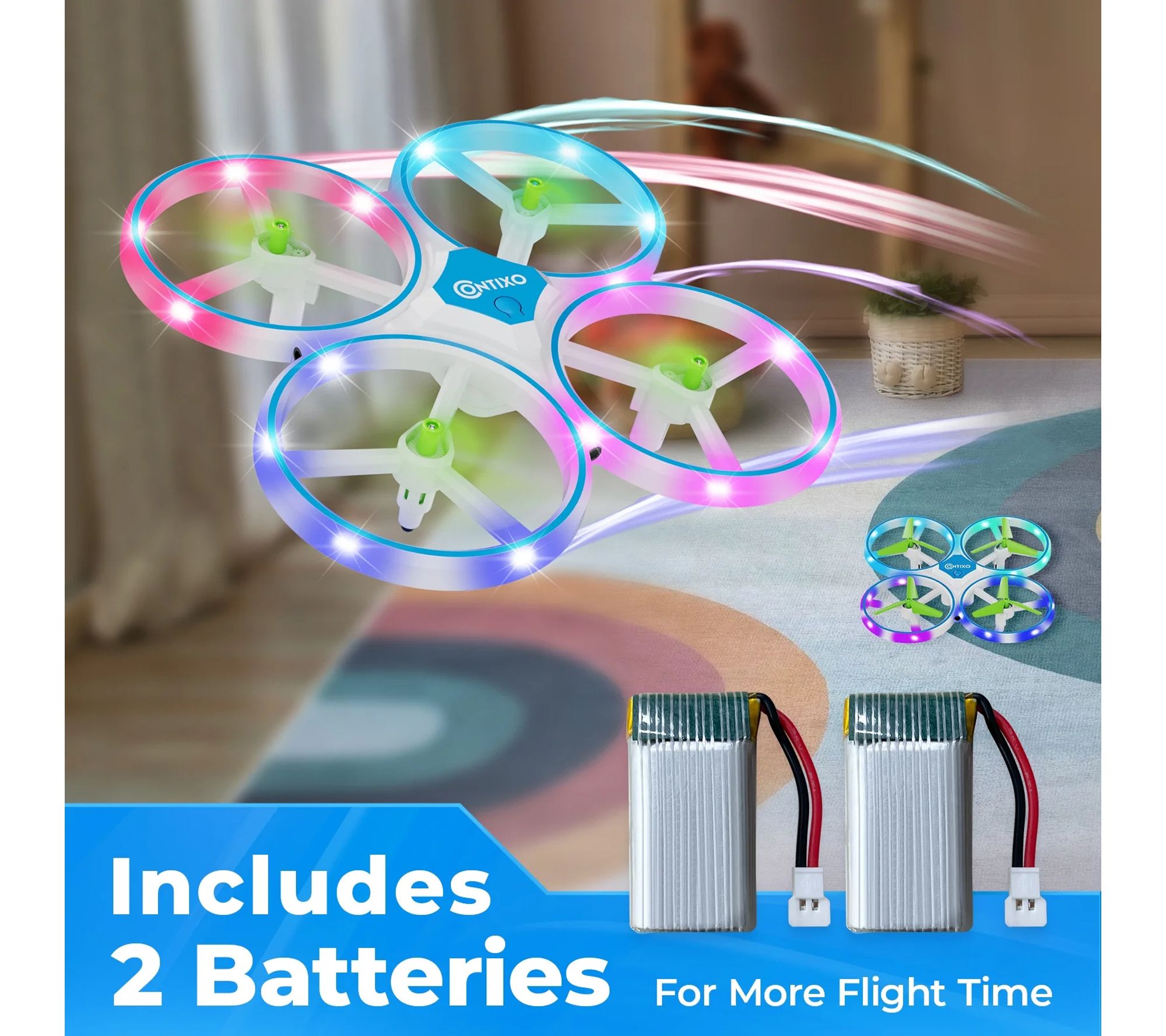 Lights and flips take flight as kids bring stunts to life with the Contixo Dragonfly LED Light-Up Mini Drone. Easy-to-use controls and protective propeller guards add confidence as new pilots send dazzling spins through the living room or backyard, while compact portability ensures every family outing includes its own glowing air show. From Contixo.