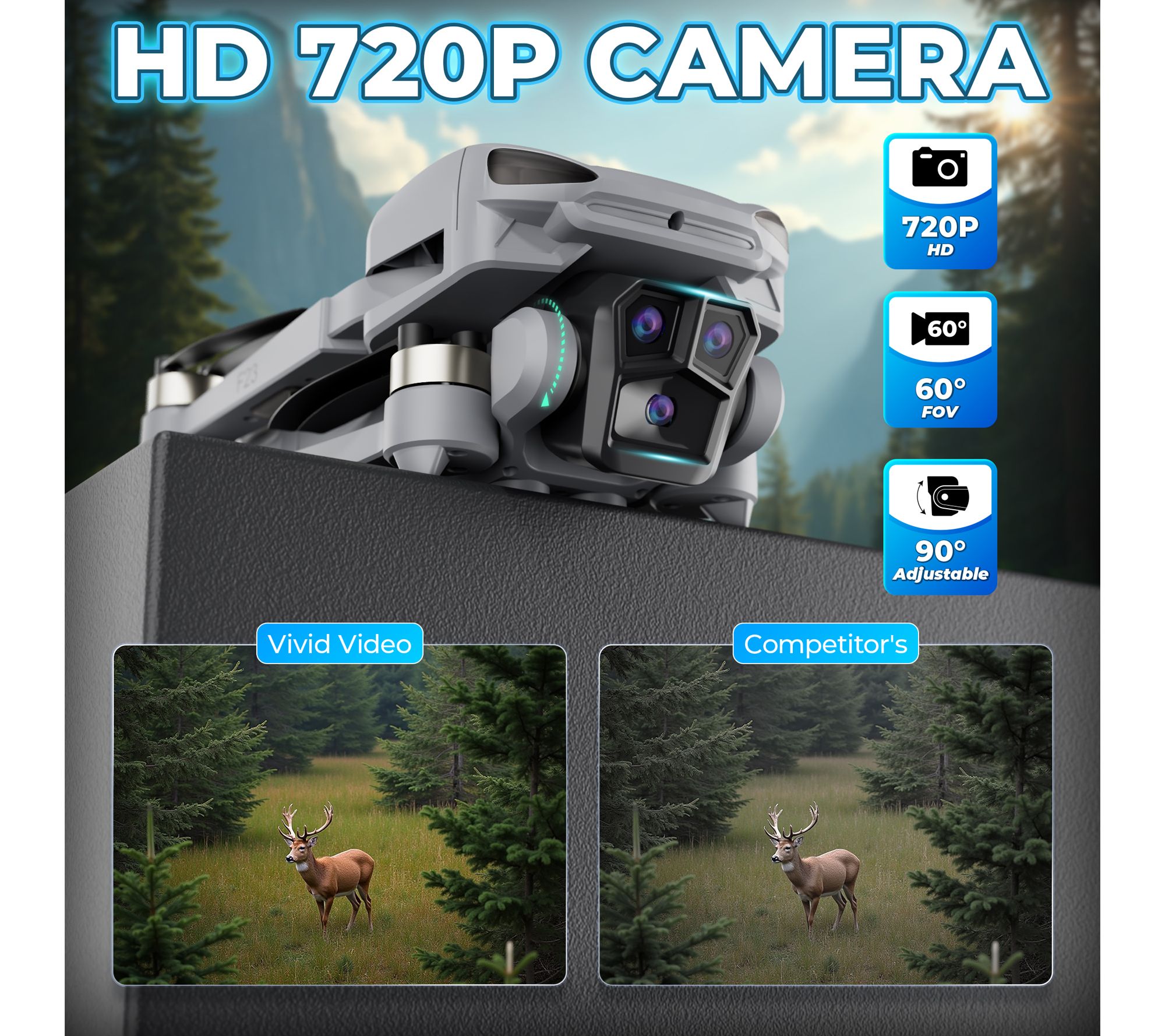 • Camera drone supports FPV when connected to a phone