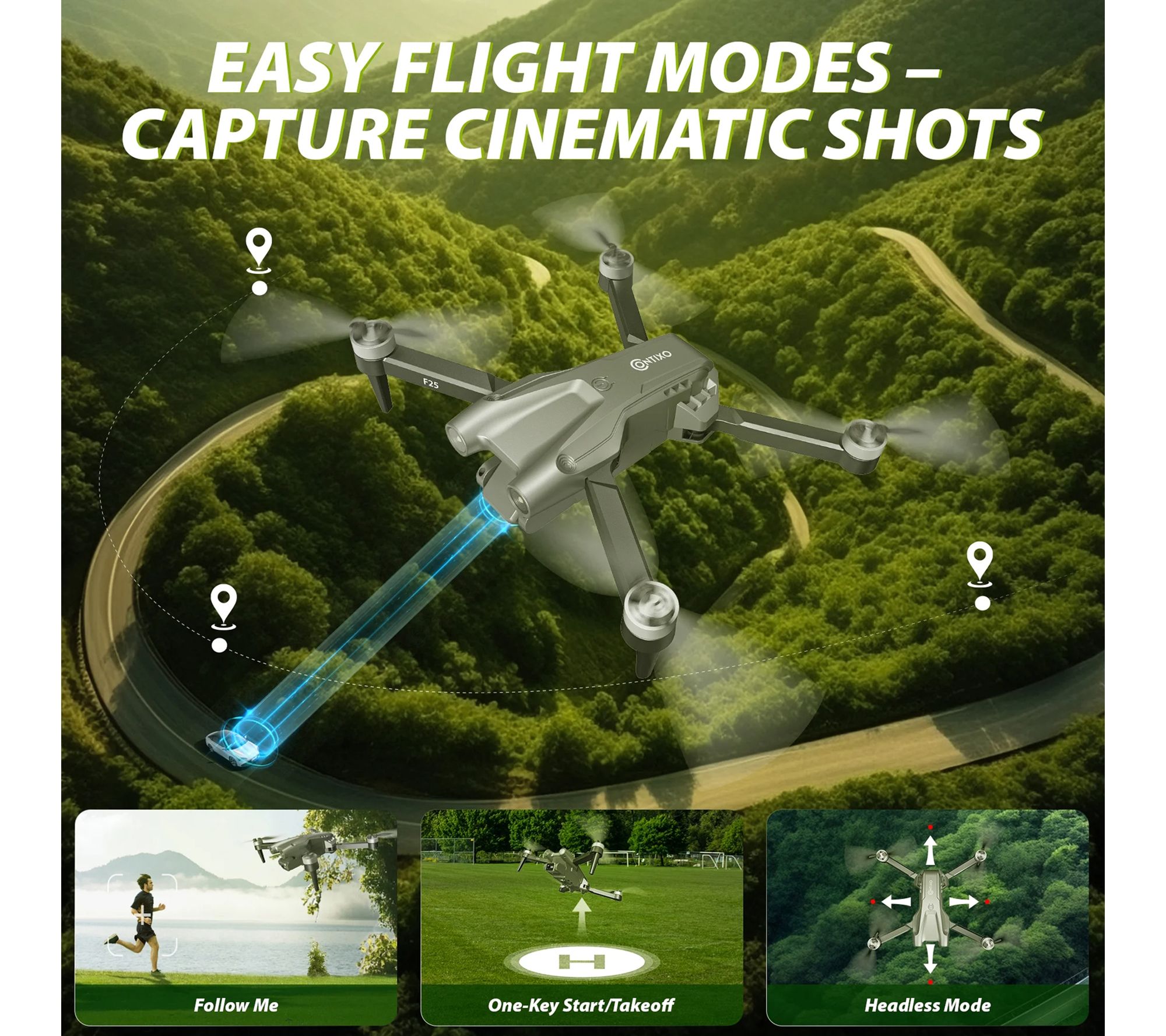 From epic family adventures to spontaneous weekend getaways, the Contixo F25 Mini Foldable Drone invites you to capture dazzling aerial photos and videos in crisp 1080p clarity. Effortlessly share breathtaking perspectives through the 4.3" FPV monitor -- no phone or app required -- while smart flight modes let creativity soar on every flight. From Contixo.