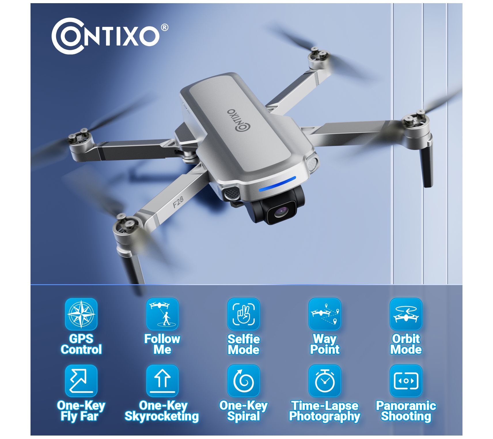 Looking to capture next-level aerial photos and video? The F28 Pro foldable GPS drone from Contixo comes equipped with a wow-inducing 4K Ultra HD camera, offering a field of view of 85 degrees and adjustable angles ranging from -90 degrees to 0 degrees. You'll also enjoy time-lapse photography and panoramic shooting features. From Contixo.