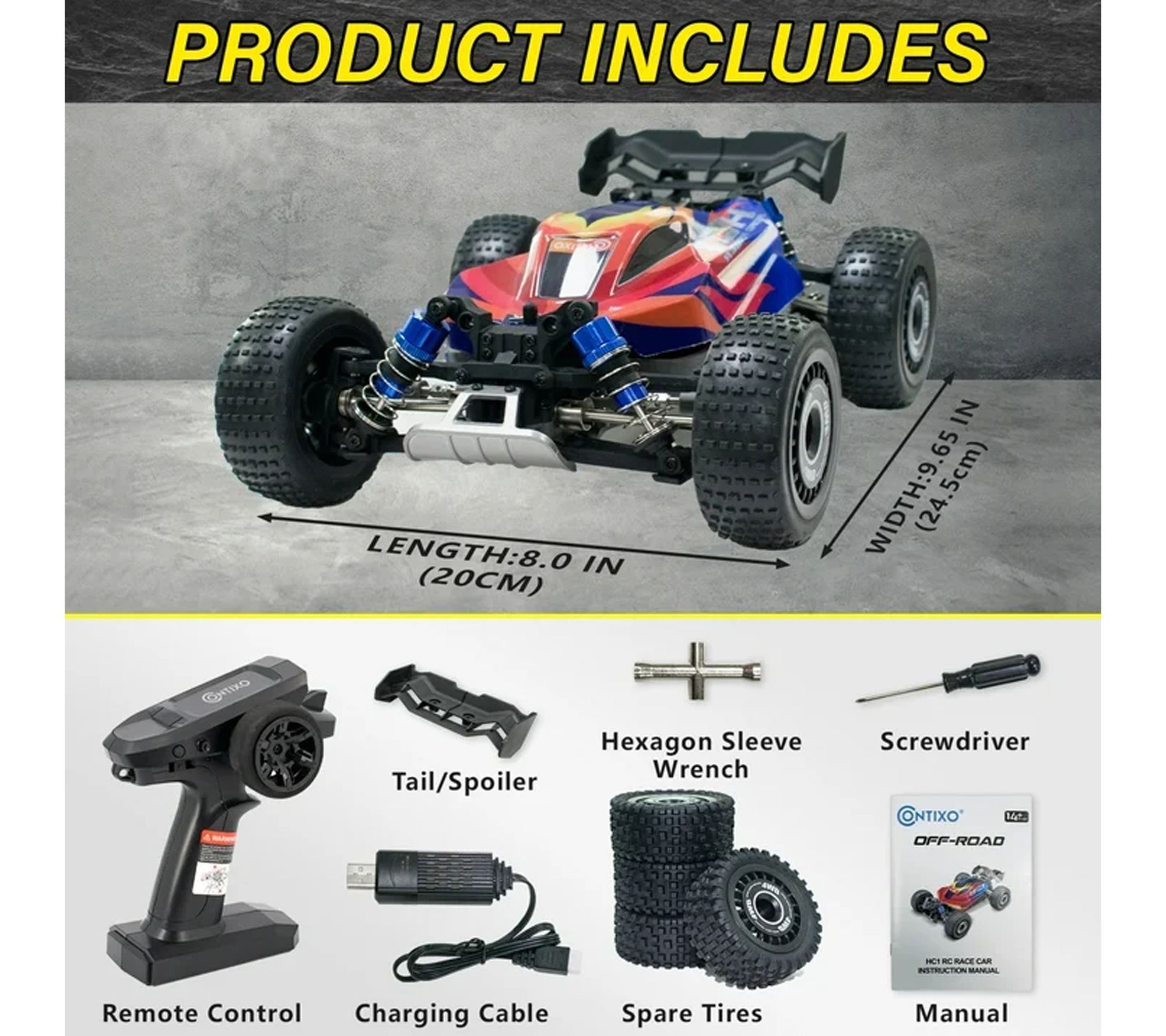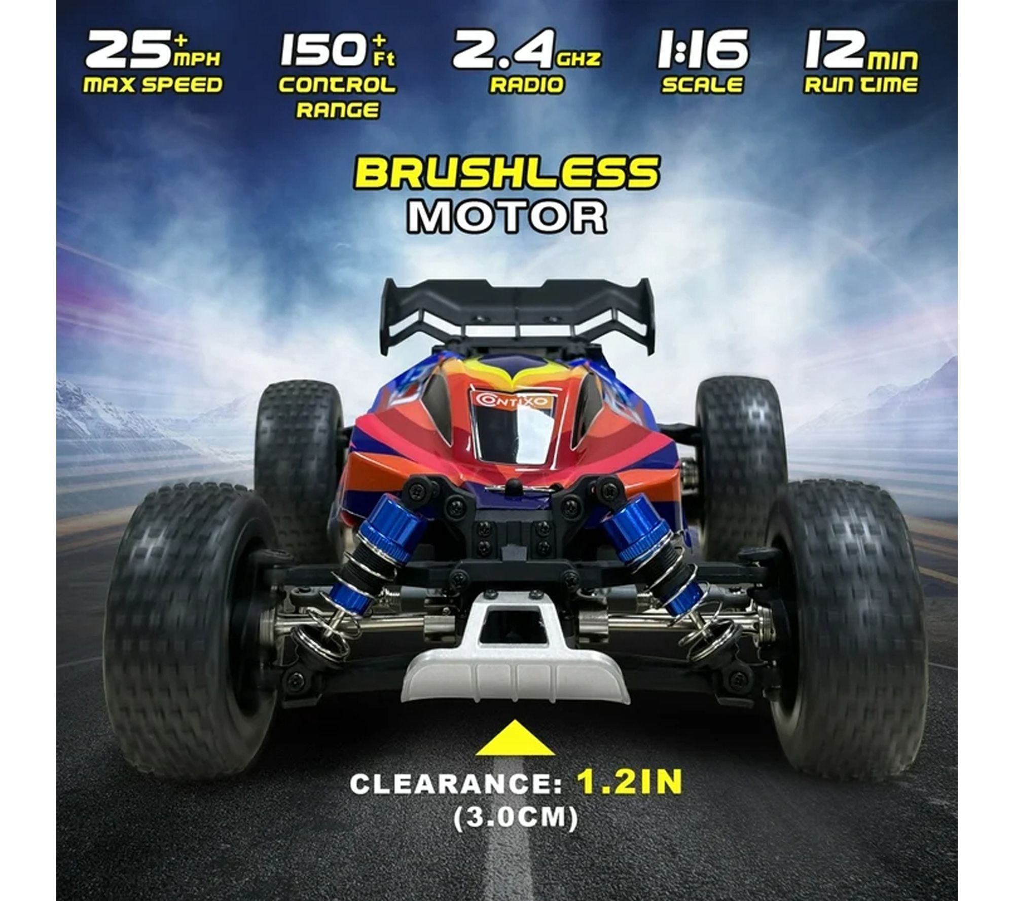 Experience the thrill of high-speed racing with this RC remote control car, designed for action-packed adventures on any terrain. With its authentic 1:16 scale and powerful brushless motor, you'll enjoy smooth acceleration, precise steering, and rugged performance, whether you're a beginner or a seasoned hobbyist. From Contixo.