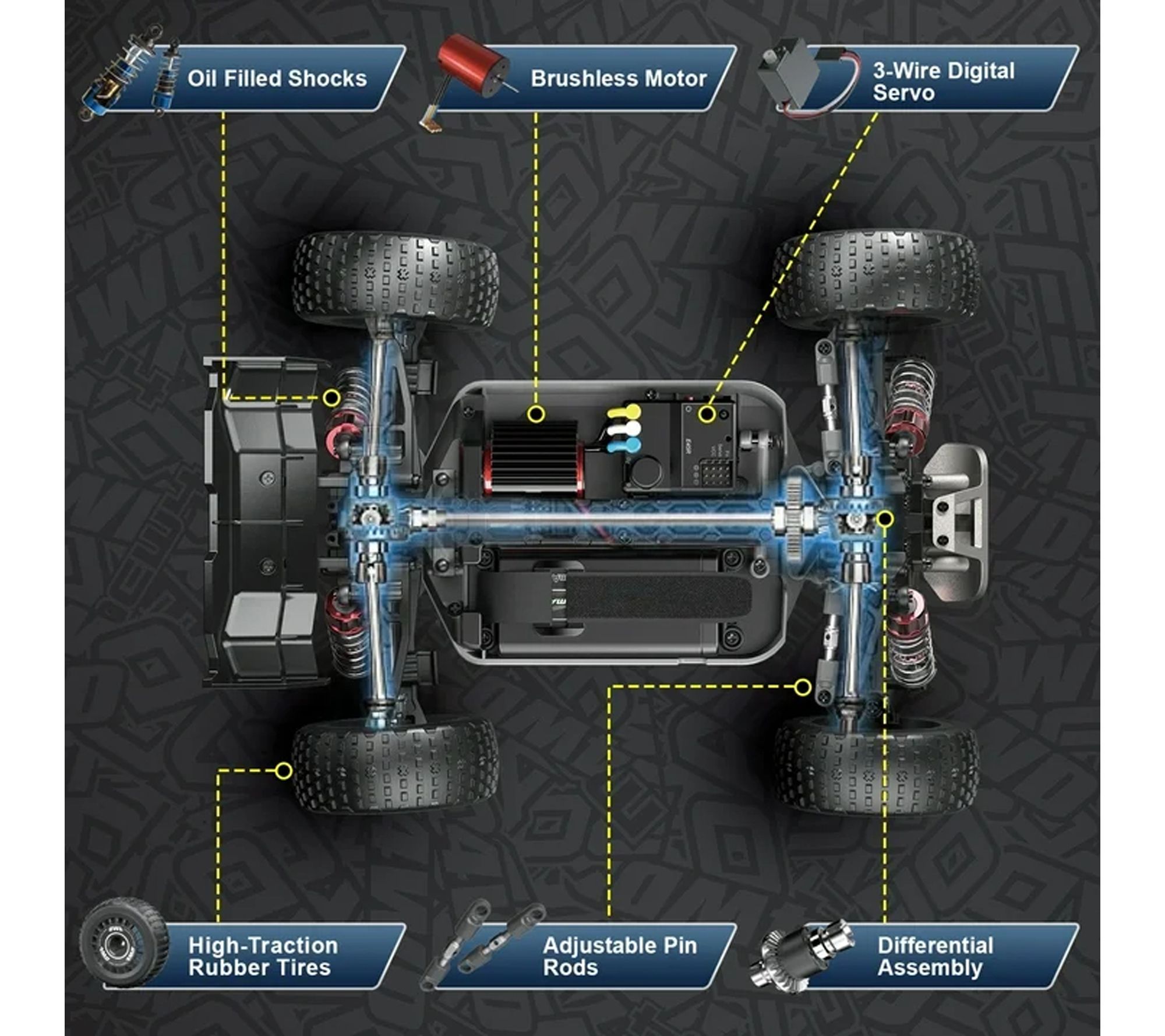 Top speed up to 39 KM/H with brushless motor and 7.4V battery