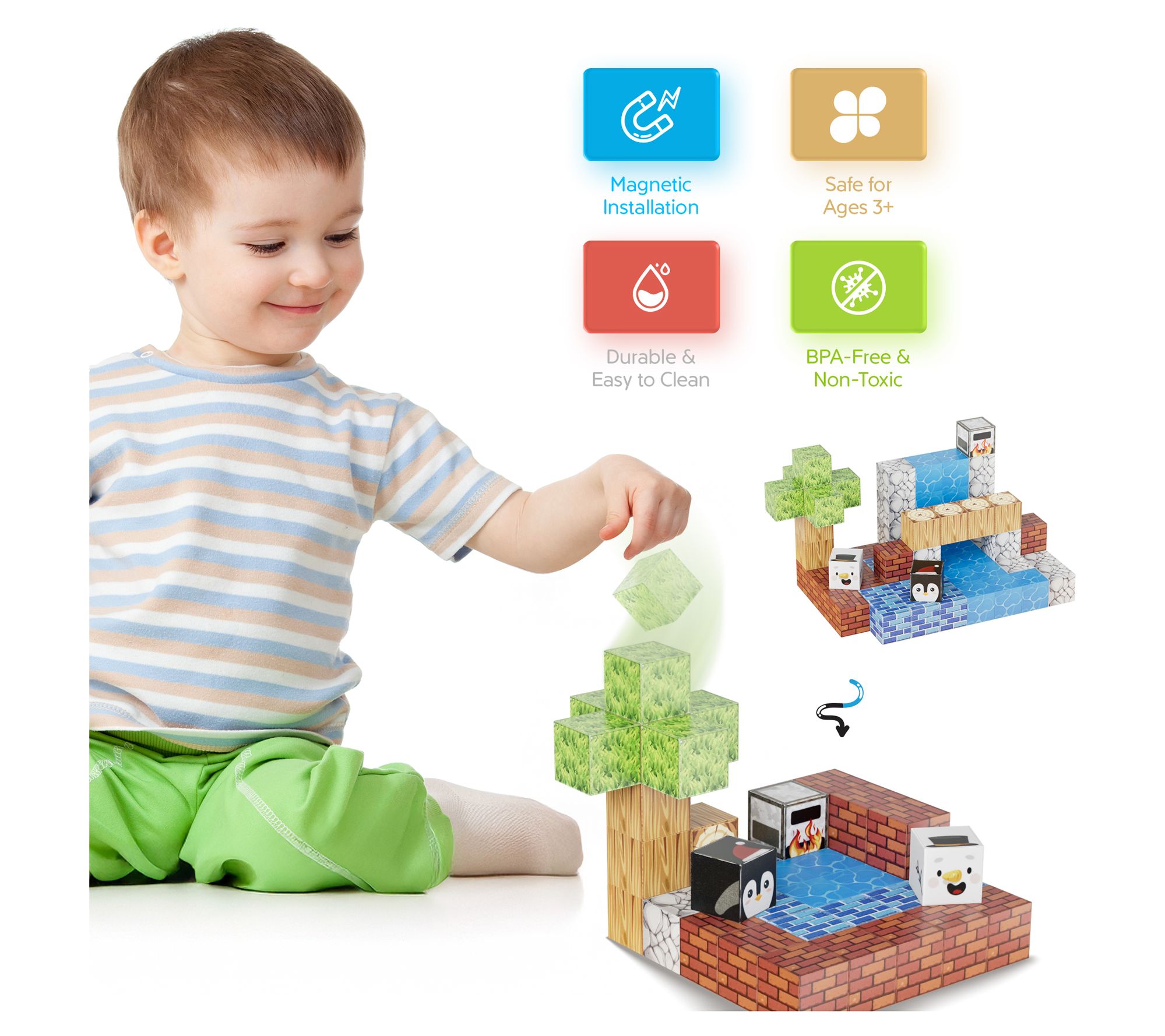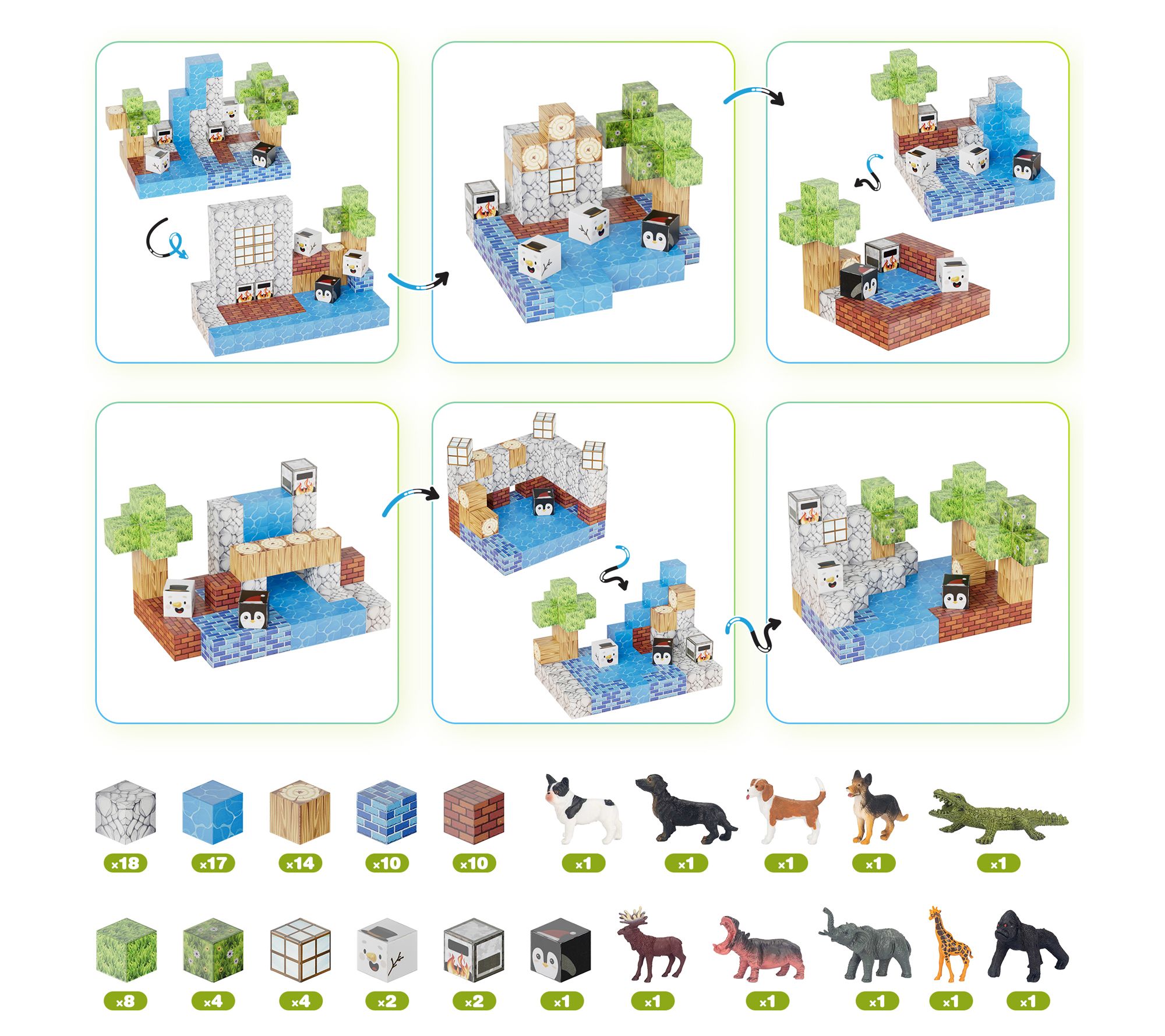 • Includes 90 magnetic blocks and 10 animal figures