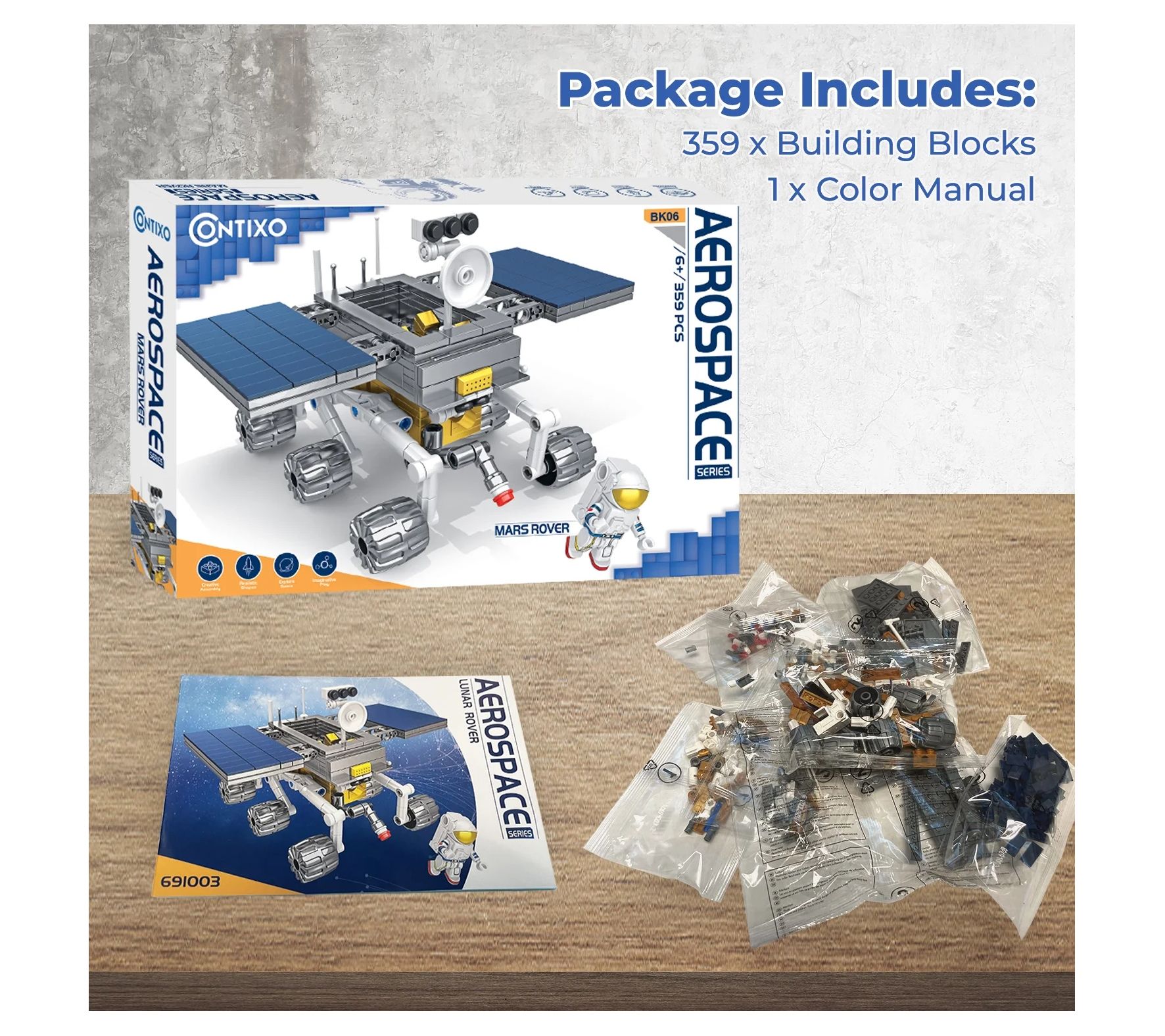 Budding engineers and space enthusiasts will love piecing together their own Mars Rover with this engaging building blocks set. With 359 pieces, it's a hands-on way to learn about robotics and space exploration, encouraging creativity and curiosity through STEM play. Build, imagine, and embark on out-of-this-world missions. From Contixo.