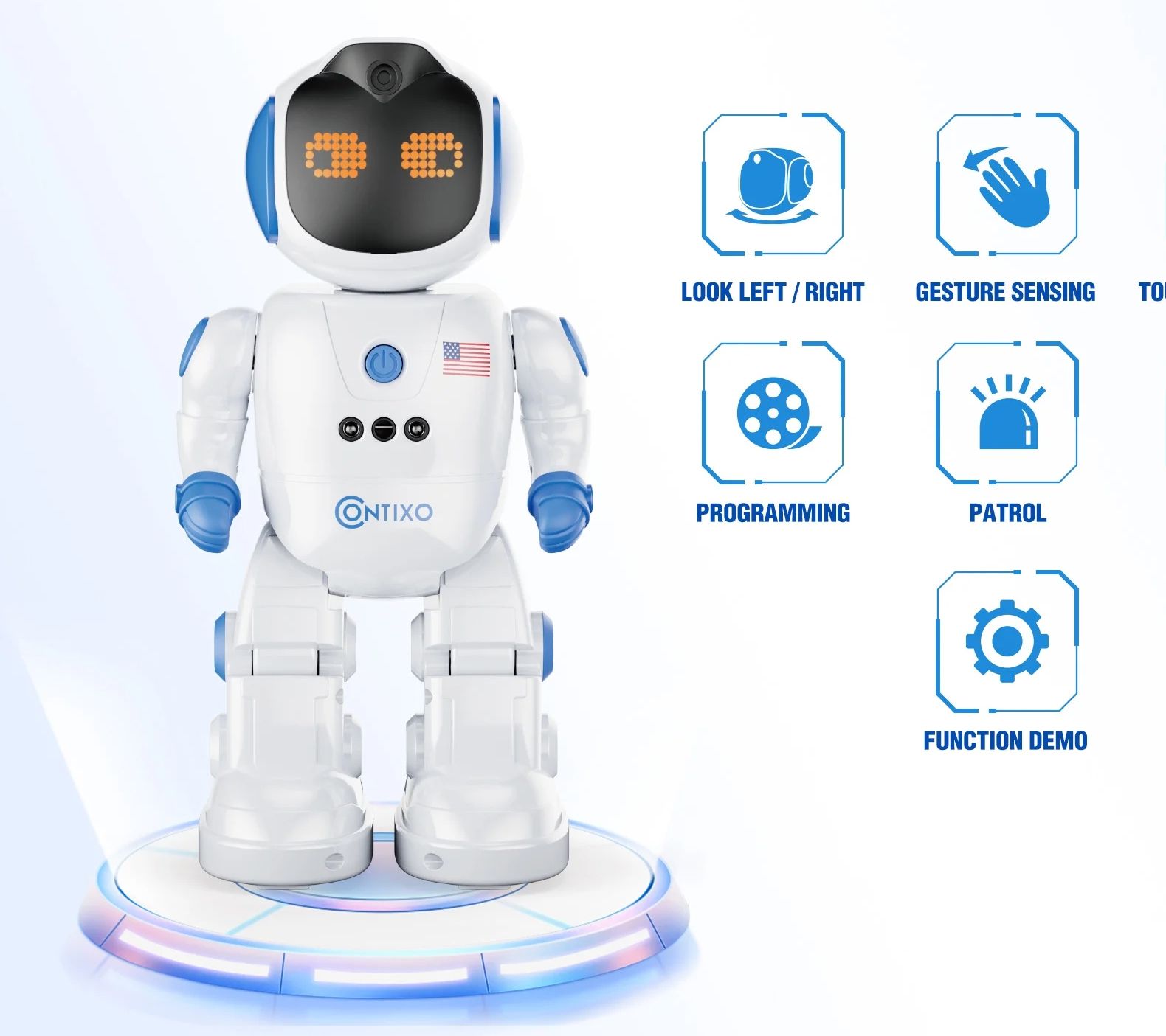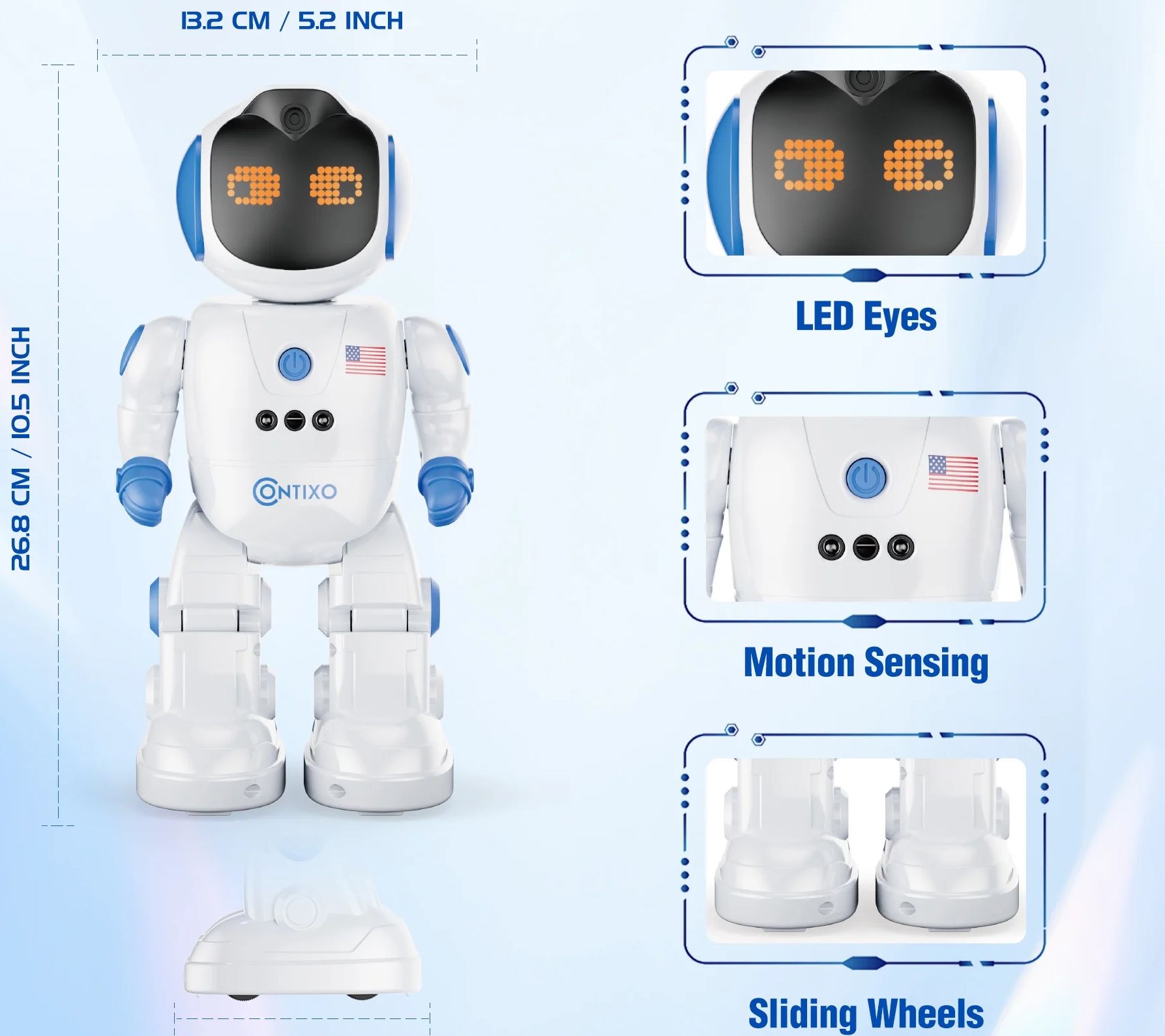 Give the kids in your life a hands-on way to explore technology, play, and creativity with this interactive smart robot toy. This fun robot dances, patrols, responds to hand gestures, and can be programmed with over 50 actions to create hours of imaginative play. Easy remote control, gesture movement, and touch-sensitive responses open up endless possibilities for learning and entertainment. From Contixo.