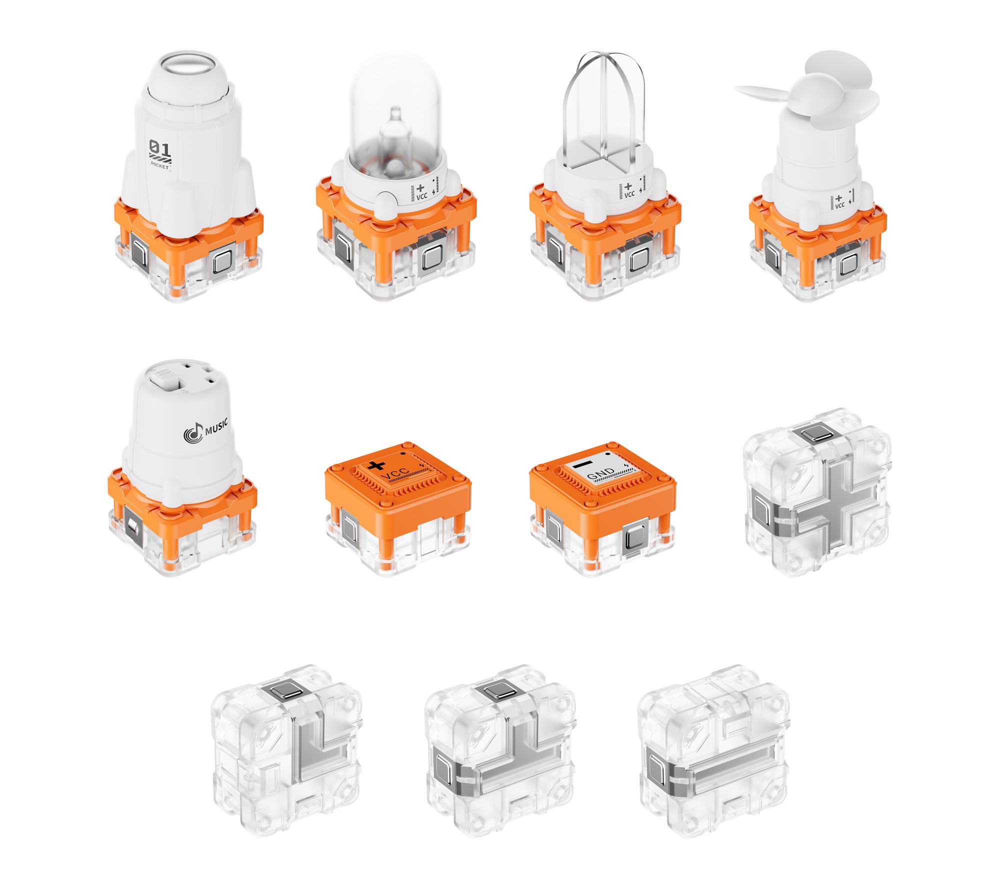• Includes circuit board, fan module, music module, projection module, negative pole, positive pole, RGB module, lighting module, fourteen connectors, USB charging cable, and user manual