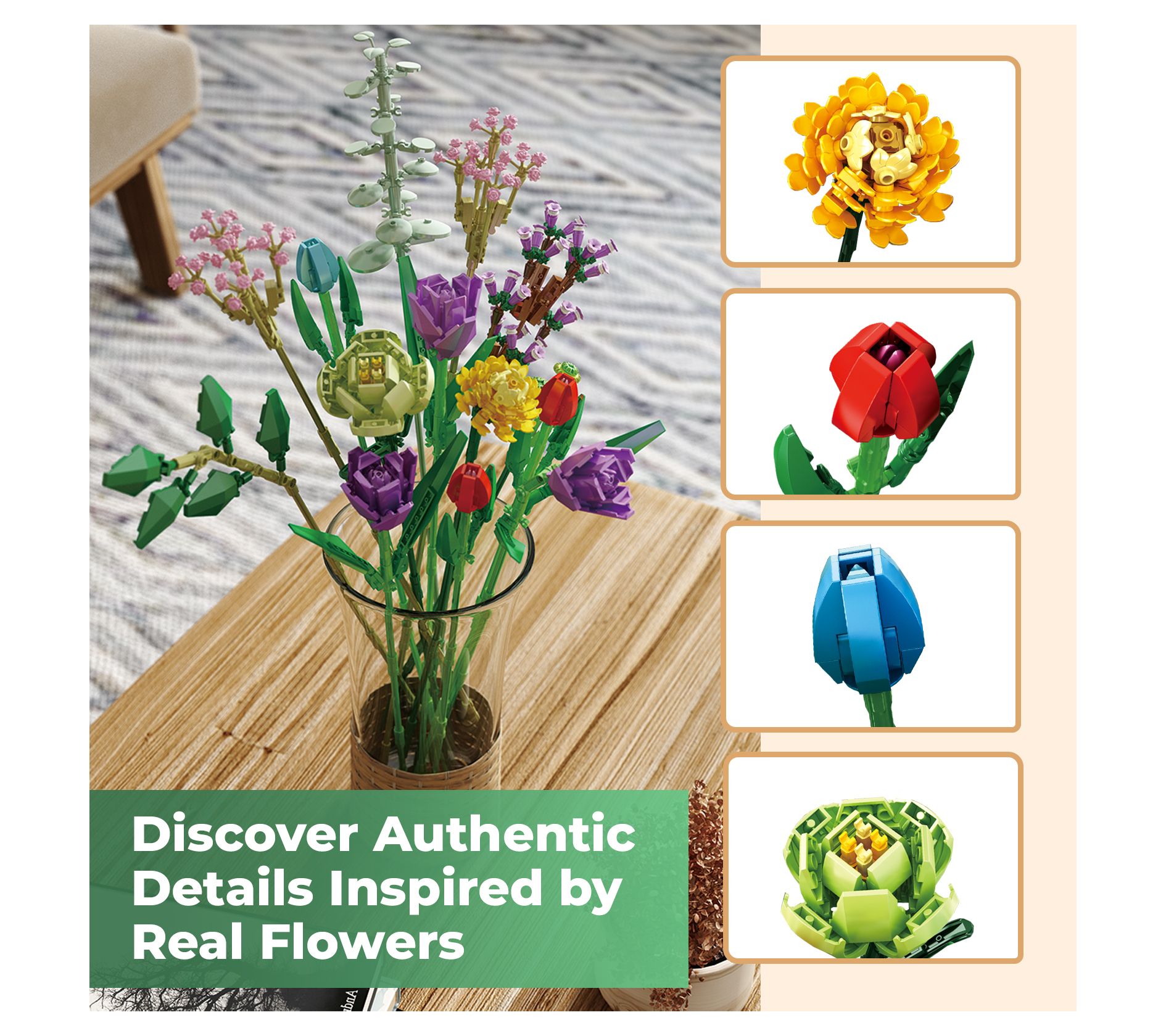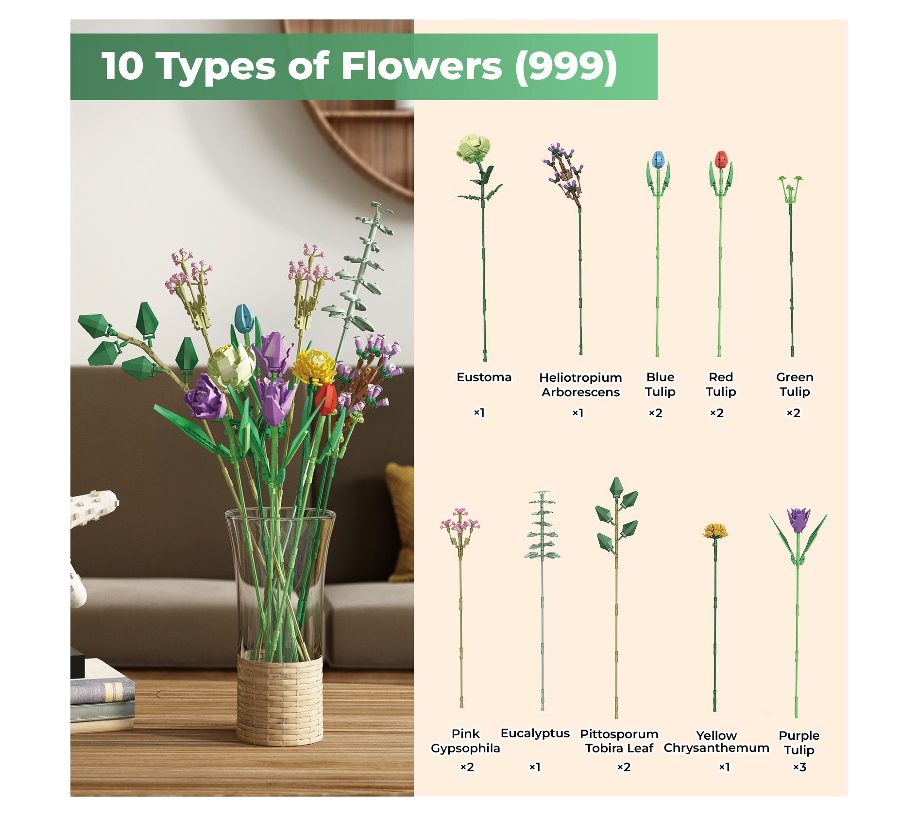 Contixo Tulip Bouquet Floral Building Blocks Set 999 PCS