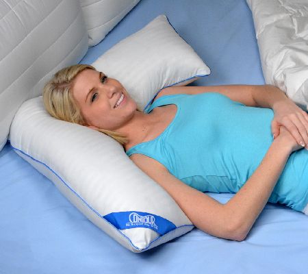 You'll hug it, and squish it, and love it. The perfect pillow for all-night comfort, the L-shaped body support pillow from Contour creates an optimum side sleeping position. Simply wrap your arms around one side of the pillow while resting your head on the other side to keep your neck, shoulders, and upper body naturally aligned. It can also be used as a side pillow, maternity pillow, or a pillow for your knees. From Contour.