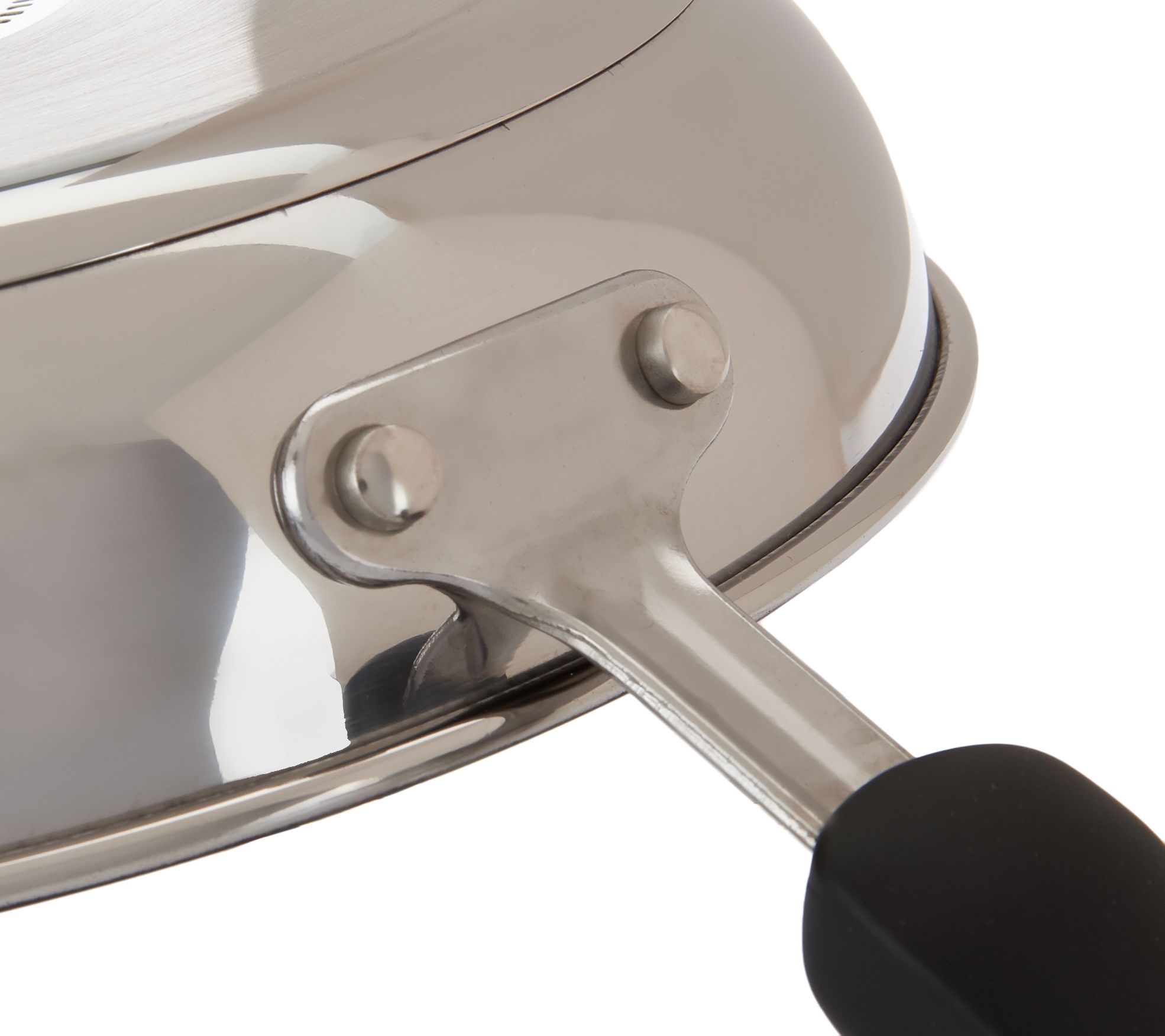 Shine and dine. This Cook's Essentials 13-piece stainless steel cookware set makes cooking and cleaning a breeze. This attractive collection includes all the tools you need with DuPont ScratchGuard Ultra nonstick coatings for easy food transfer. Plus, each piece can be tossed right in the dishwasher, making cleanup a lot less stressful. From Cook's Essentials(R) Kitchenware.
