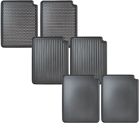 Includes grill pan, two grill plates, two griddle plates, and two perforated plates